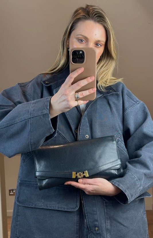 Vintage Loewe Leather Clutch Bag Navy