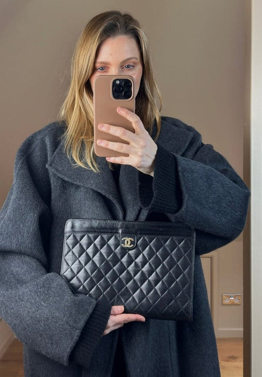 Vintage Chanel Executive Black Caviar Leather Tote Bag