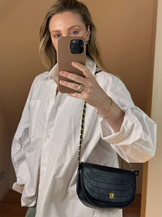 Vintage Chanel Black Half Moon Single Flap with 24k gold plated hardware