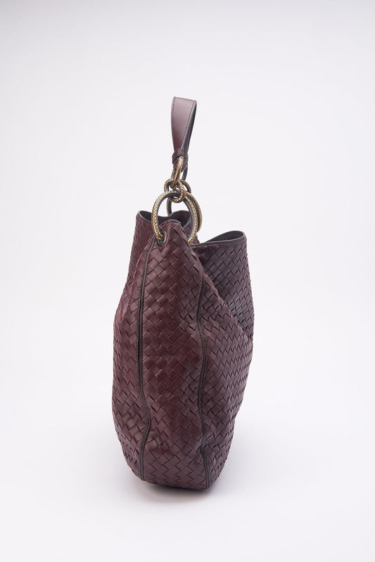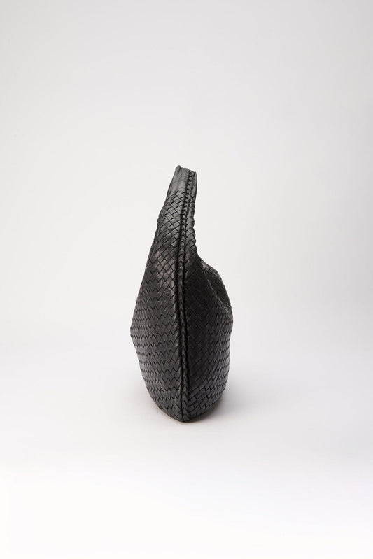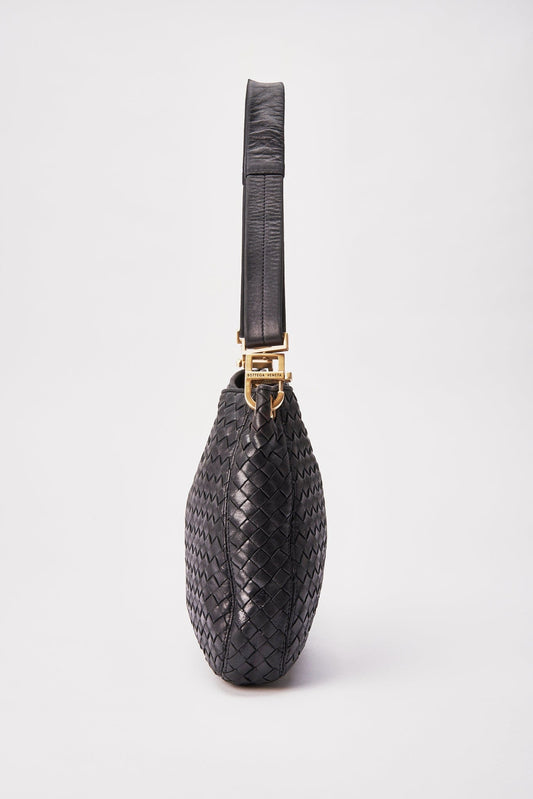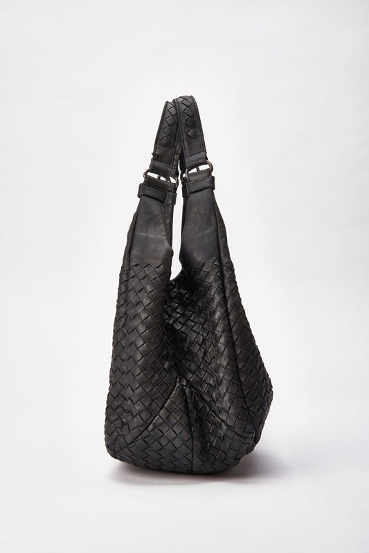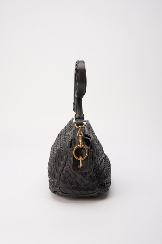 Vintage Bottega Veneta Black Intrecciato Leather Hobo Shoulder Bag