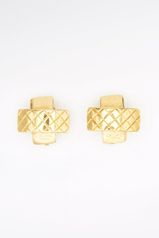 Sold outVintage Gold Celine Quilted Earrings