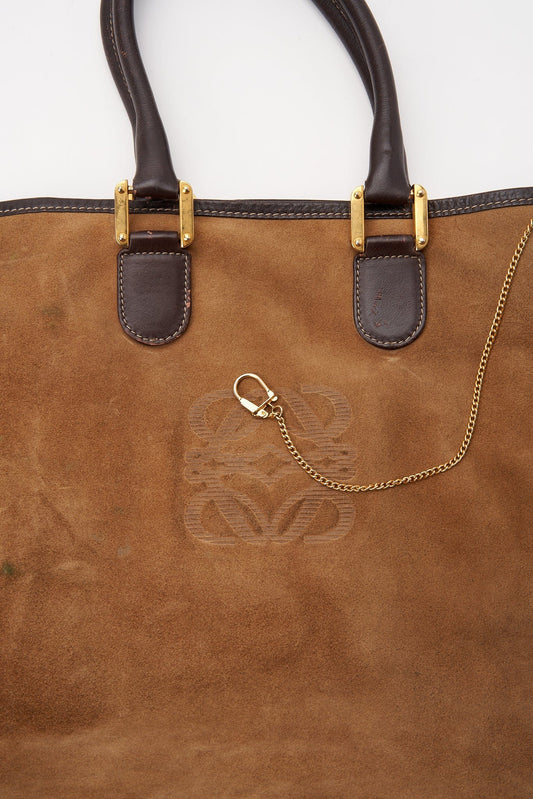 Vintage Loewe Anagram Suede and Leather Tote Bag