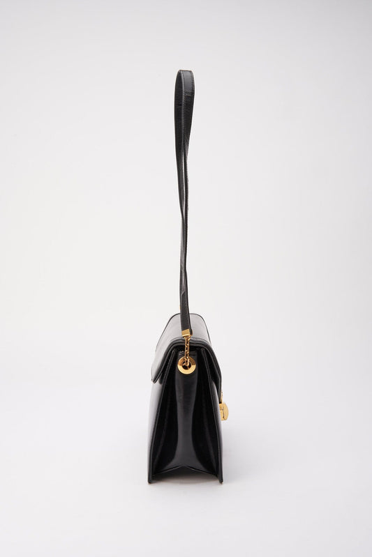 Vintage Chanel Black Half Moon Single Flap with 24k gold plated hardware