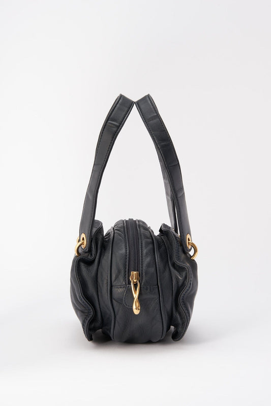 Vintage Bottega Veneta Black Intrecciato Leather Hobo Shoulder Bag