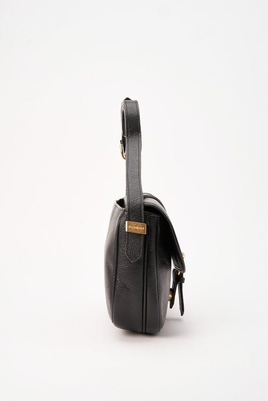 Vintage Chanel Black Leder Clutch -Tasche mit 24 Karat goldener Hardware
