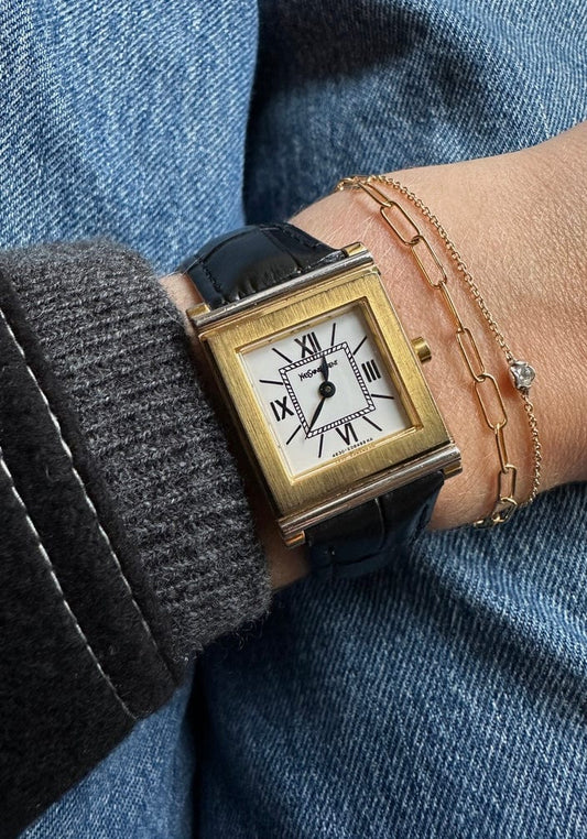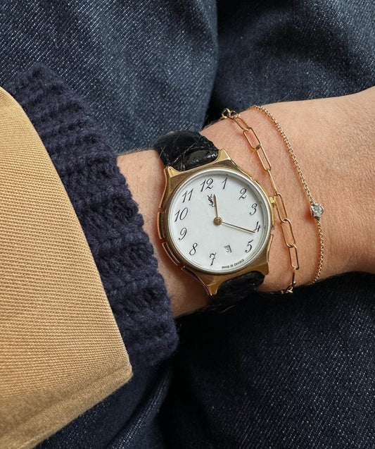 Entdecken Sie die charakteristische Eleganz der gebrauchten Yves Saint Laurent-Uhren-wo zeitloses Design Pariser Raffinesse entspricht. Jede Uhr ist von Hand ausgewählt für ihren Stil, ihre Qualität und ihren Zustand und wird dann sorgfältig inspiziert, um sicherzustellen, dass sie in ausgezeichnetem Zustand ist. Mit ihren raffinierten Details und klassischen Anziehungskraft bieten YSL -Uhren einen Hauch von zurückhaltenden Luxus. Stöbern Sie in unseren neuesten Ankünften und finden Sie eine Uhr, die den Geist der mühelosen Verfeinerung einfängt.