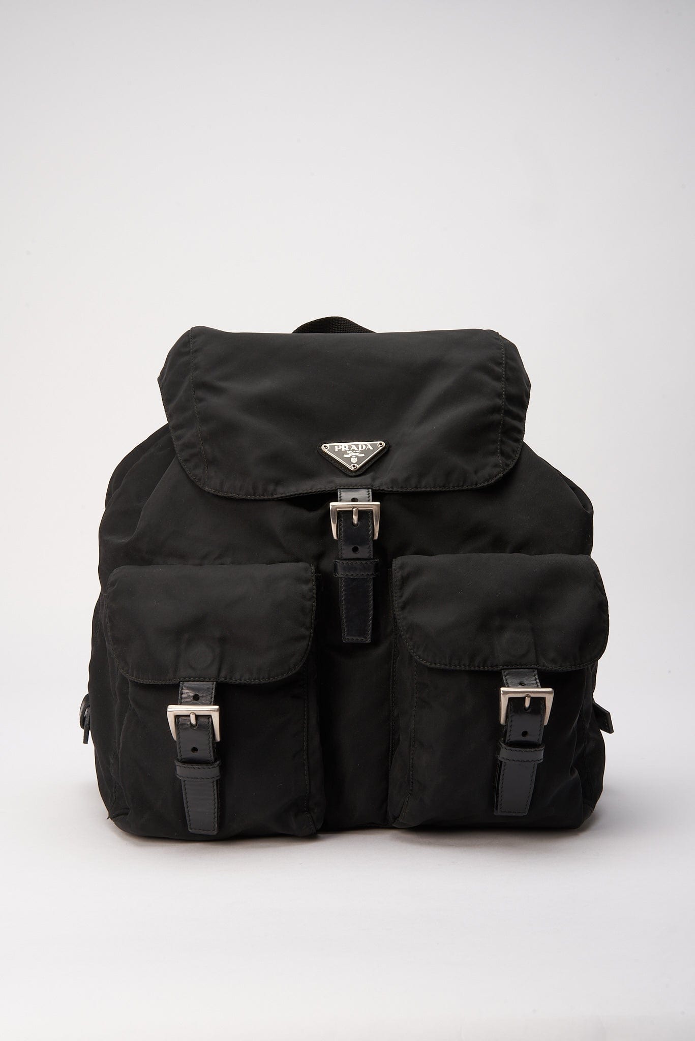 Als Prada 1984 seinen ursprünglichen Nylon -Rucksack veröffentlichte, war es ein sofortiger Hit. Dieser Nylon -Rucksack mit einem modernen, minimalistischen Design ist mit dem Prada -Emaille -Dreieck -Logo dekoriert. Unter der Klappe mit Lederband und Schnalle befindet sich ein Kordelschließung.