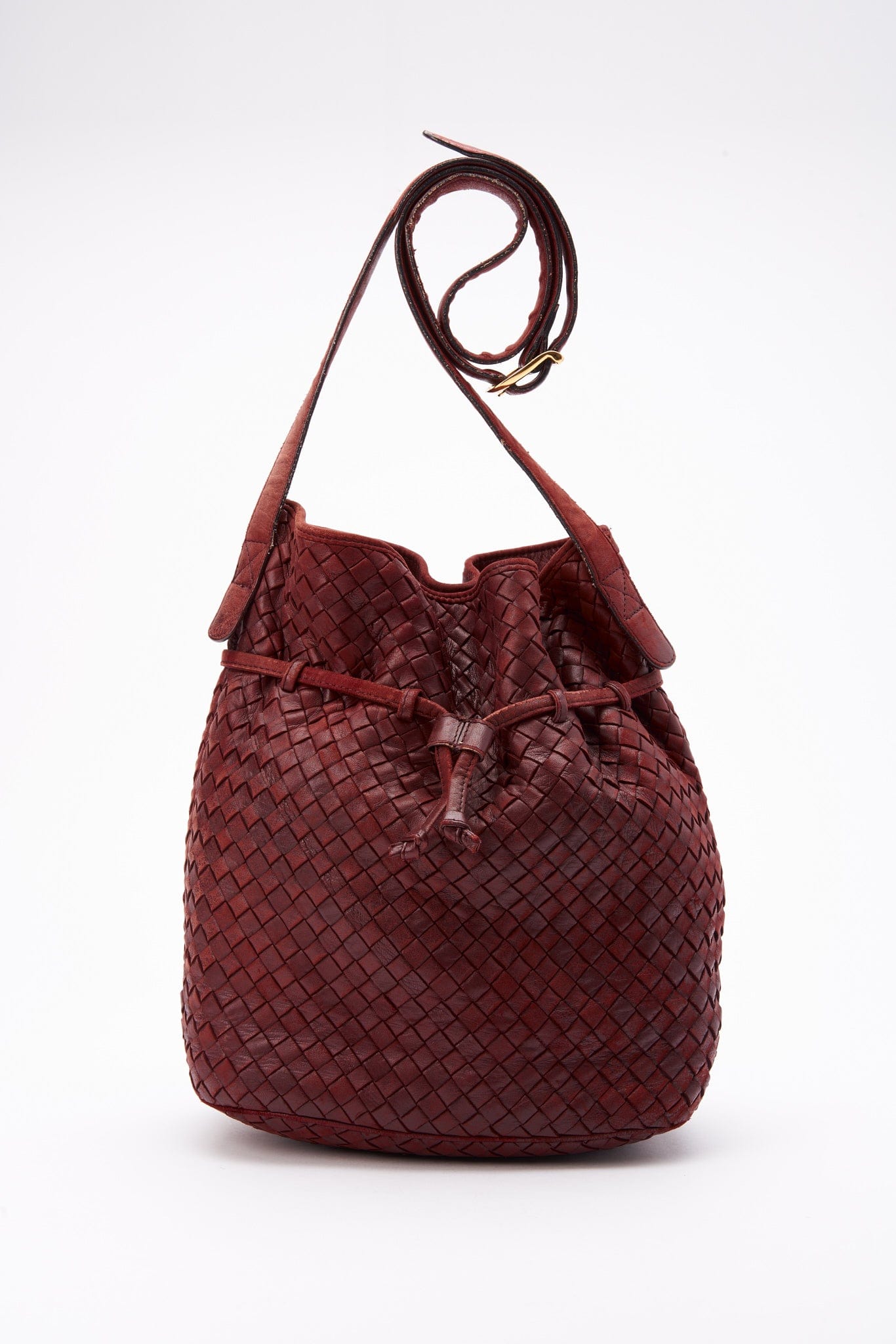 Vintage Bottega Veneta Red Intrecciato Leder Umhängetasche