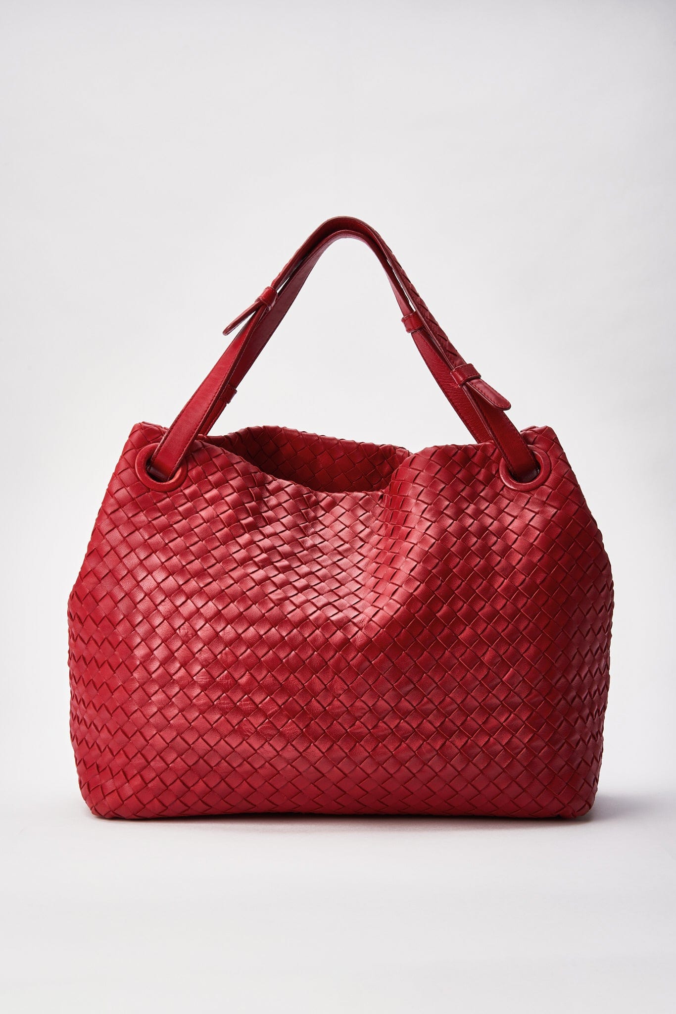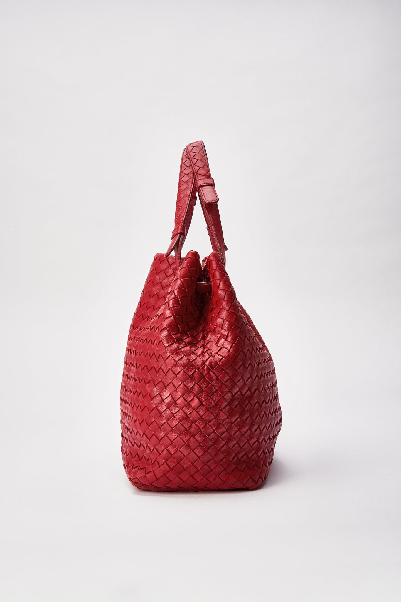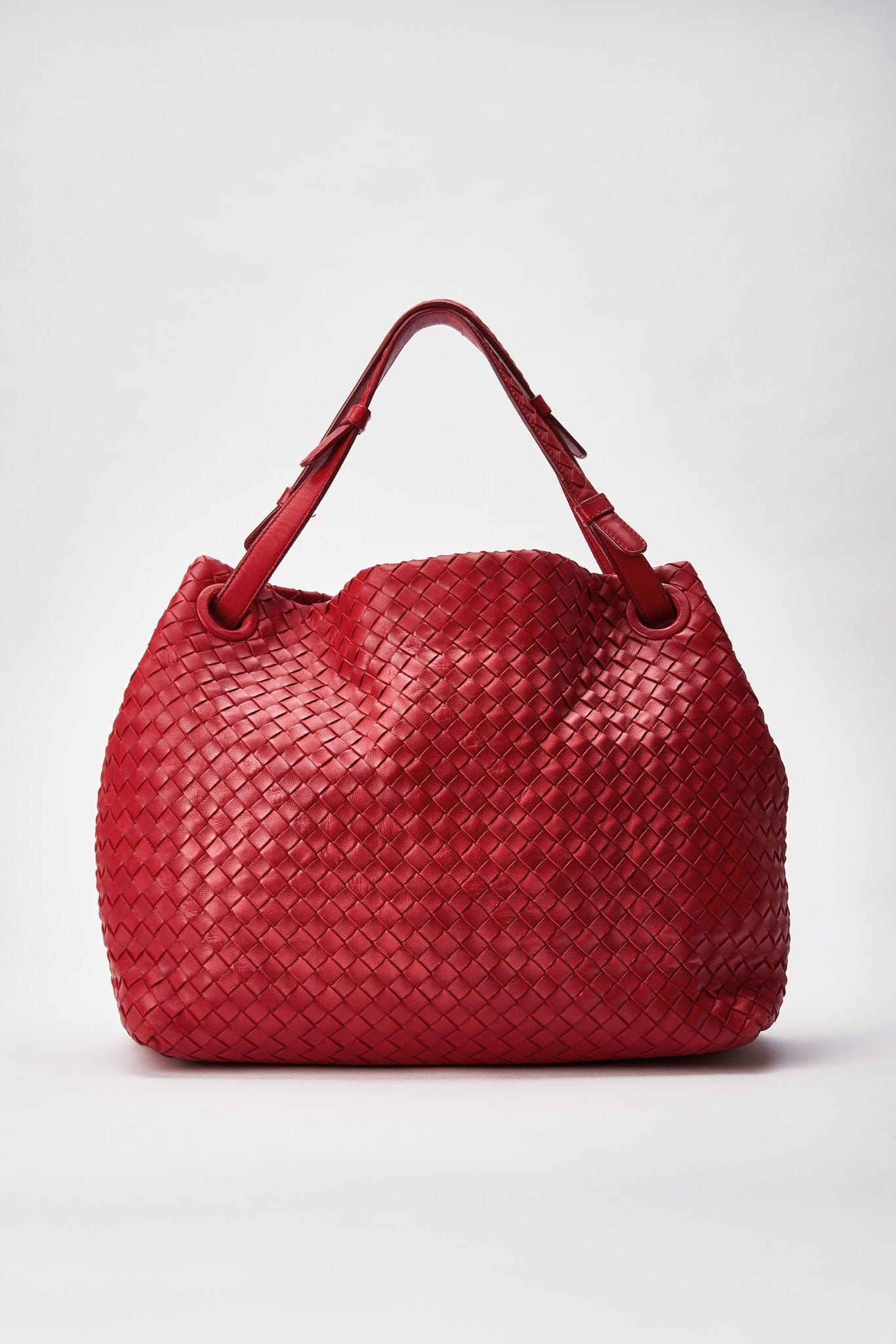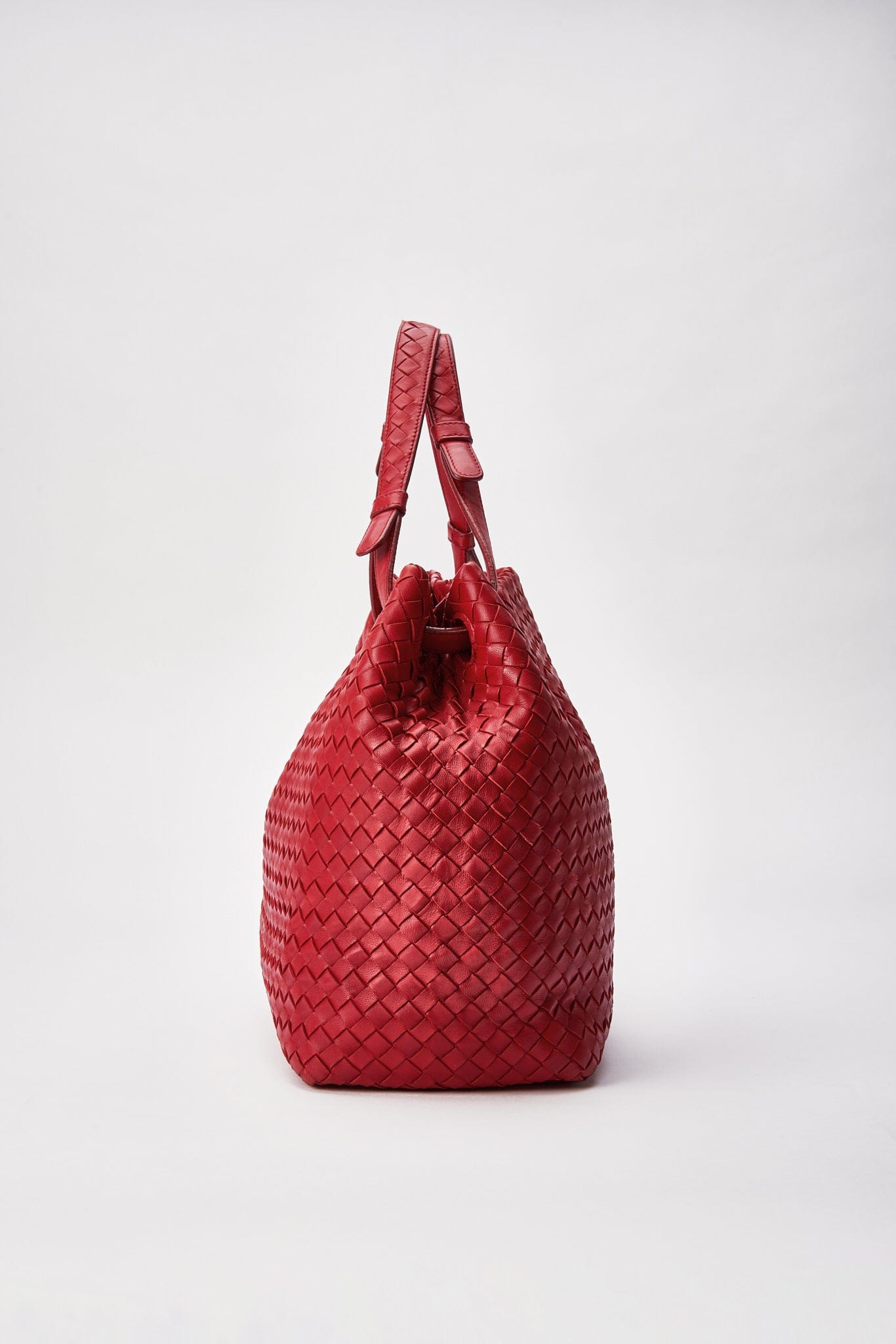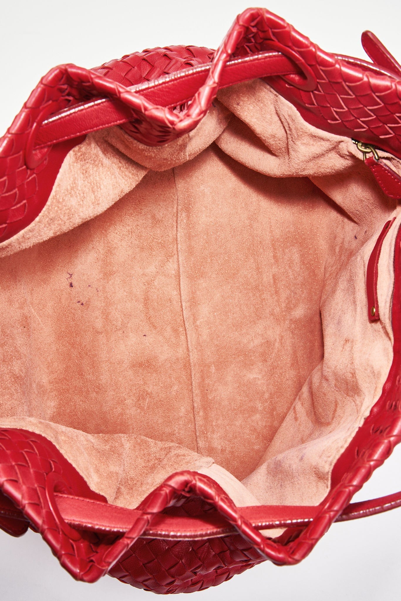 Vintage Bottega Veneta Red Intrecciato Leder Umhängetasche