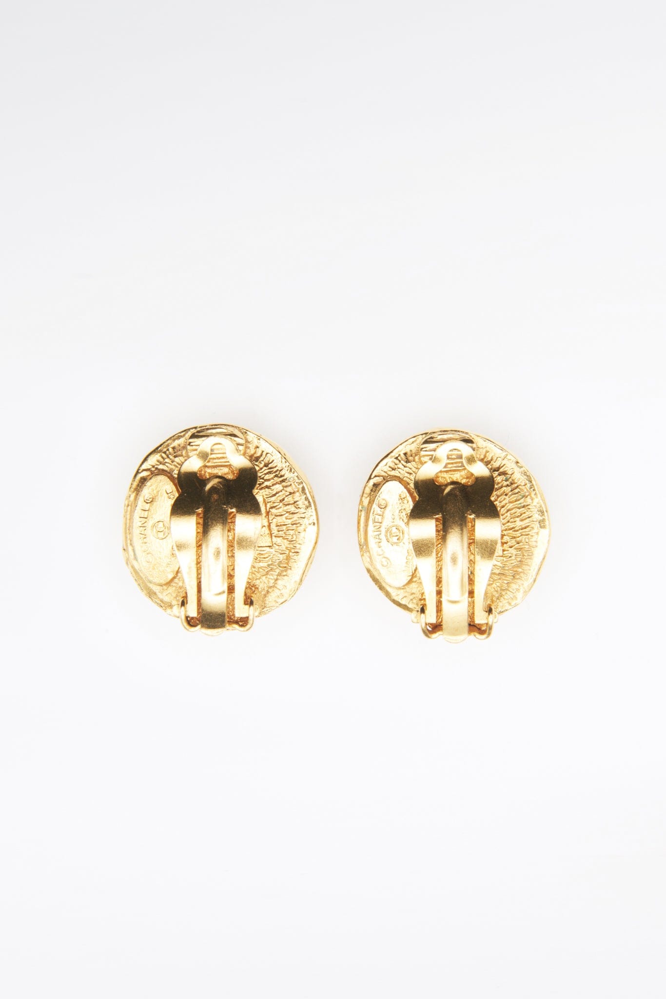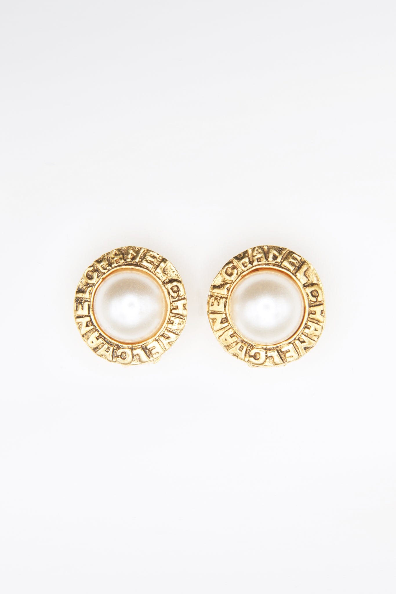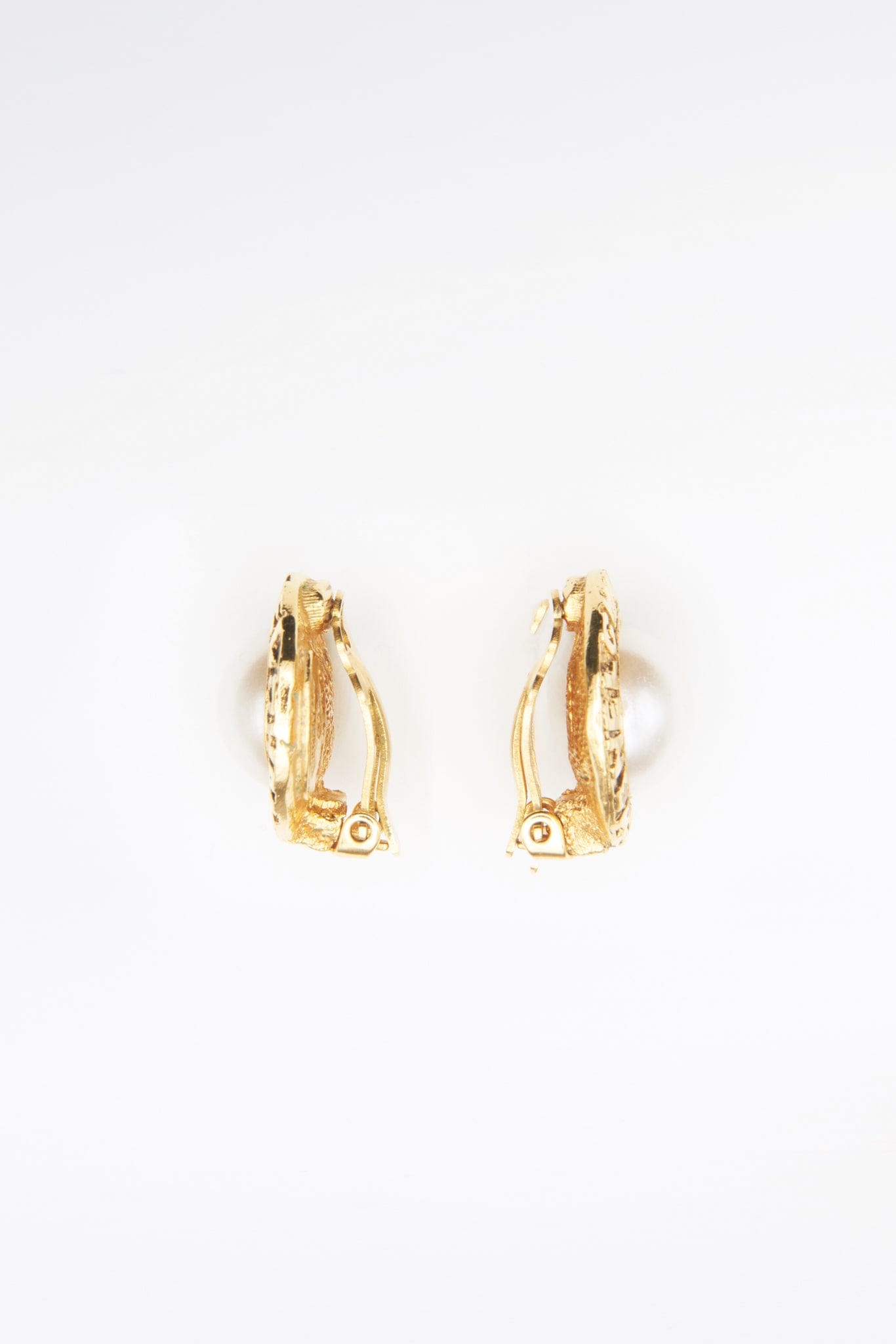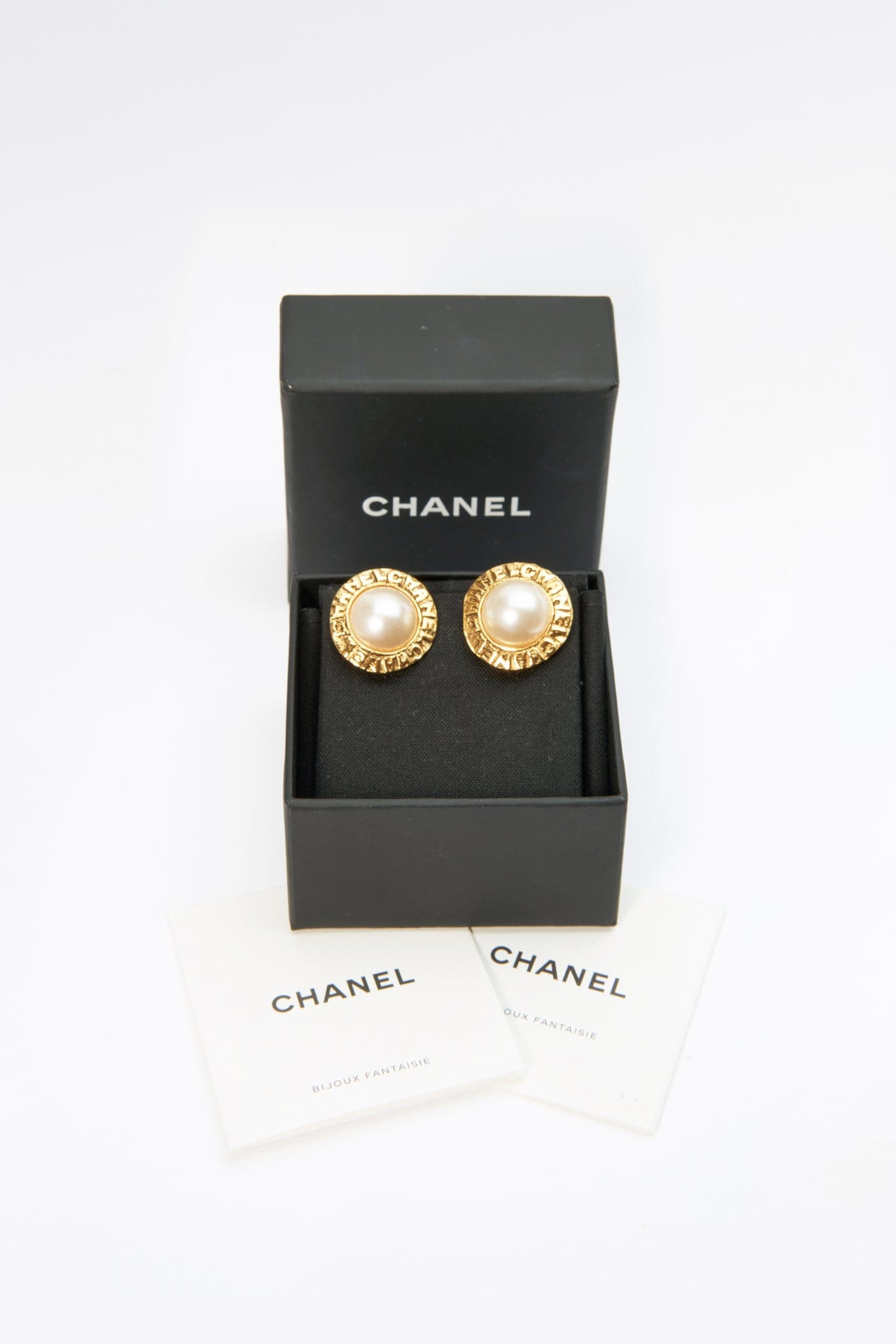 Ein Paar fabelhafter Clip auf Vintage Chanel Gold und Faux Pearl Ohrrings aus den 80ern.
