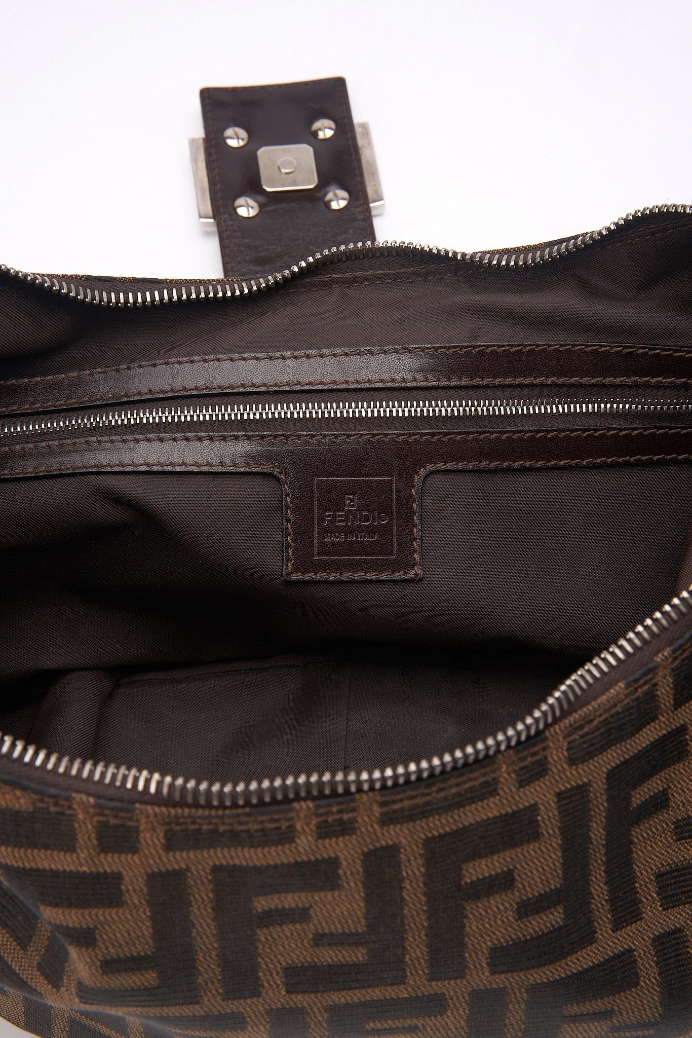 Hergestellt in der klassischen Fendi Brown Zucca Canvas. Brauner Leder -Top -Griff und Silberhardware mit Fendi -Marke. Im Inneren befindet sich eine interne Reißverschluss -Tasche für Ihre Wertsachen mit dem Fendi Metal Reißverschluss. Die Seriennummer wird auf der Innenseite der inneren Tasche gedruckt.