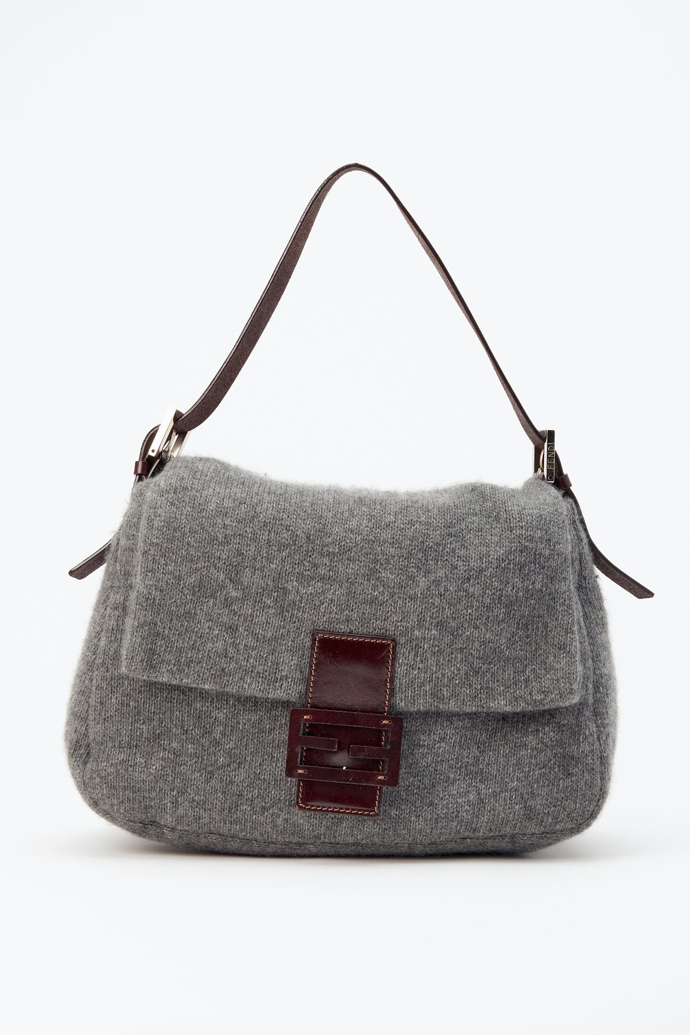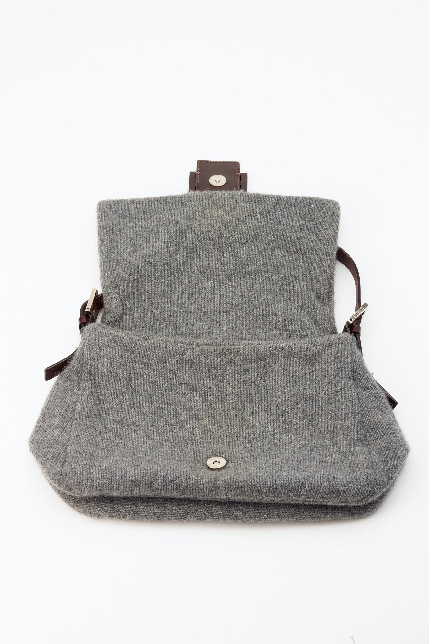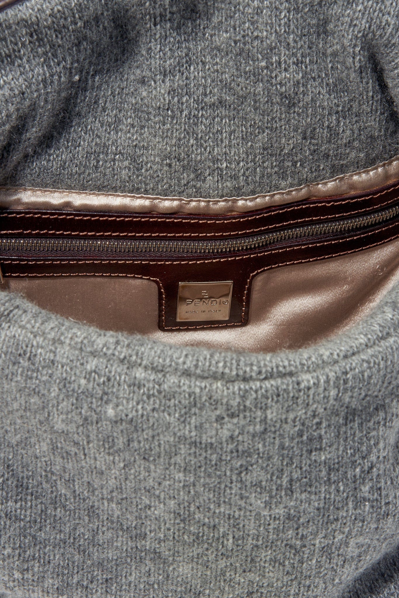 Hergestellt in einem wunderschönen grauen Kaschmir mit silbernen Hardware von Fendi Branded und dunkelbraunem Leder.