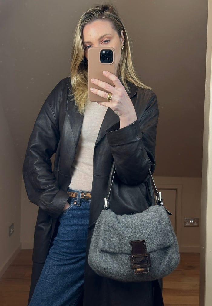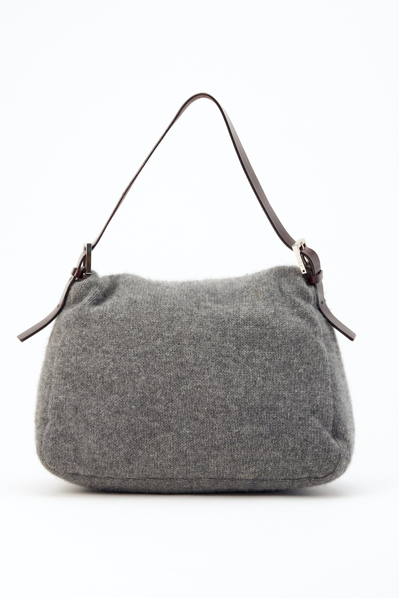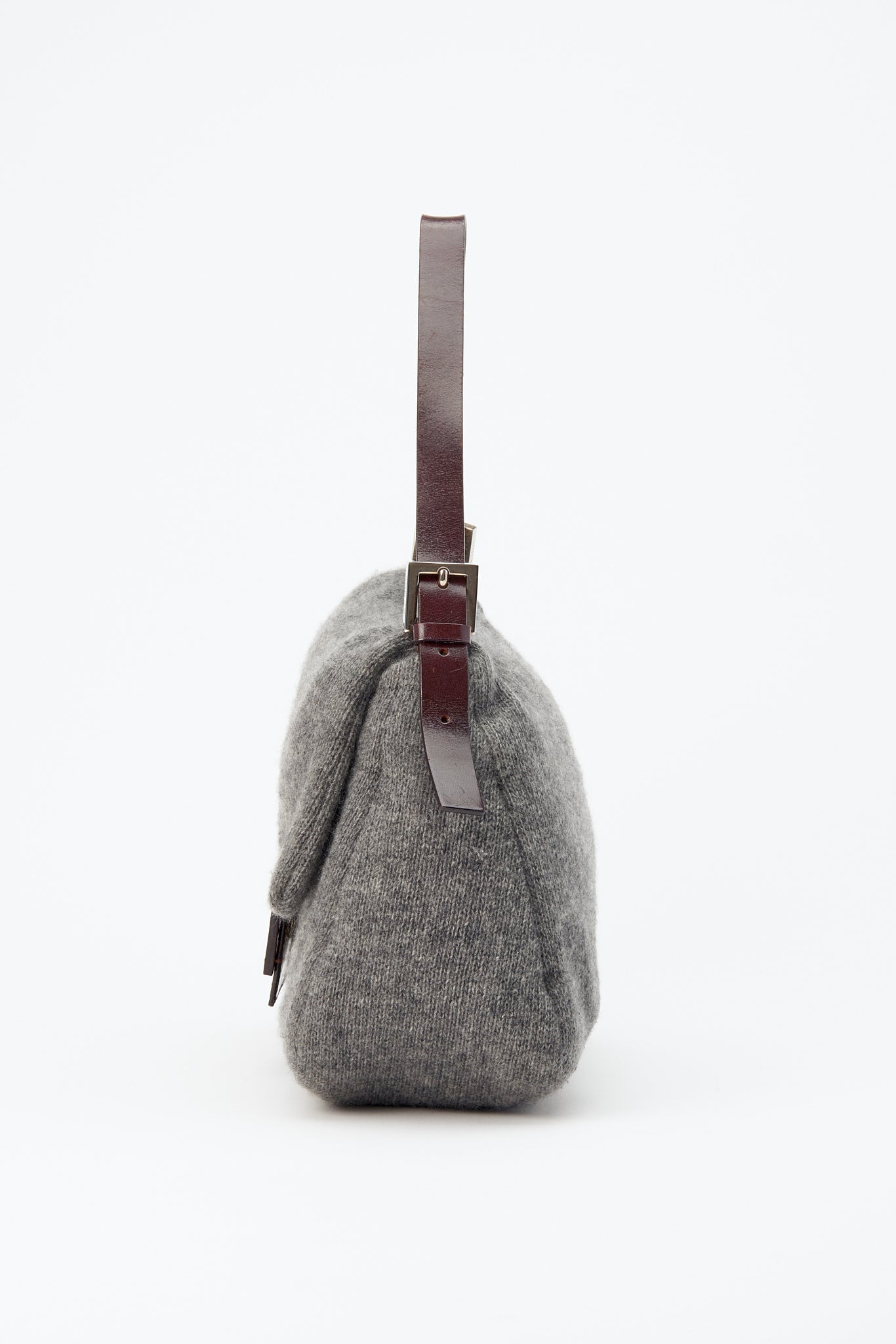 Hergestellt in einem wunderschönen grauen Kaschmir mit silbernen Hardware von Fendi Branded und dunkelbraunem Leder.
