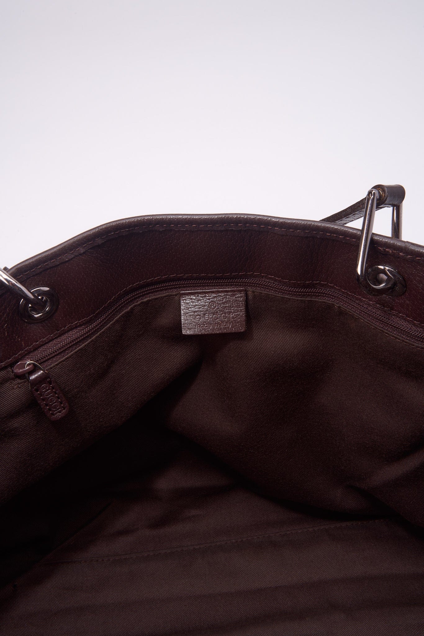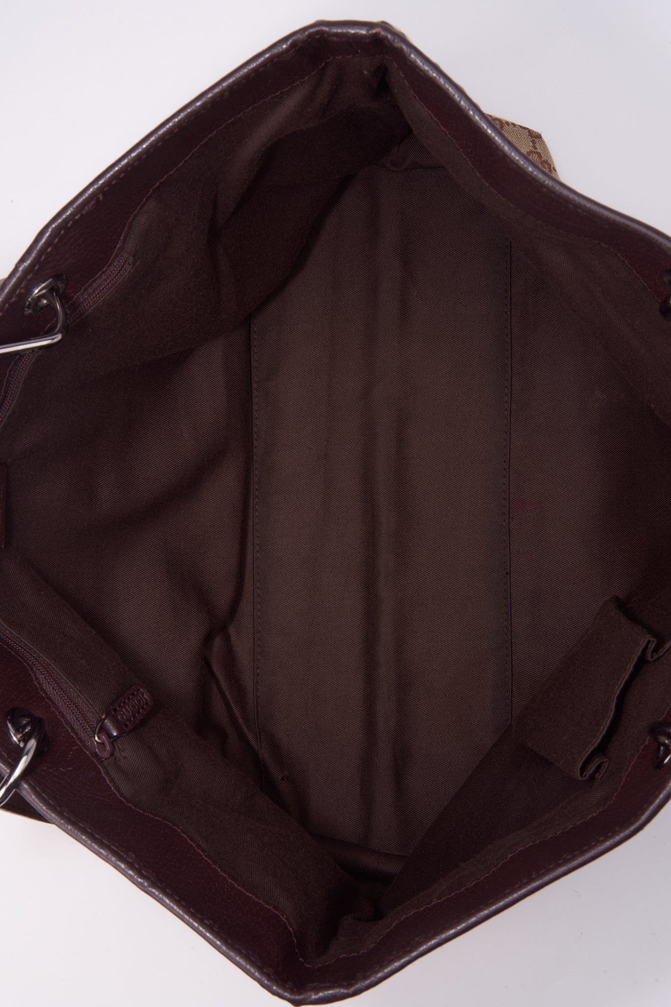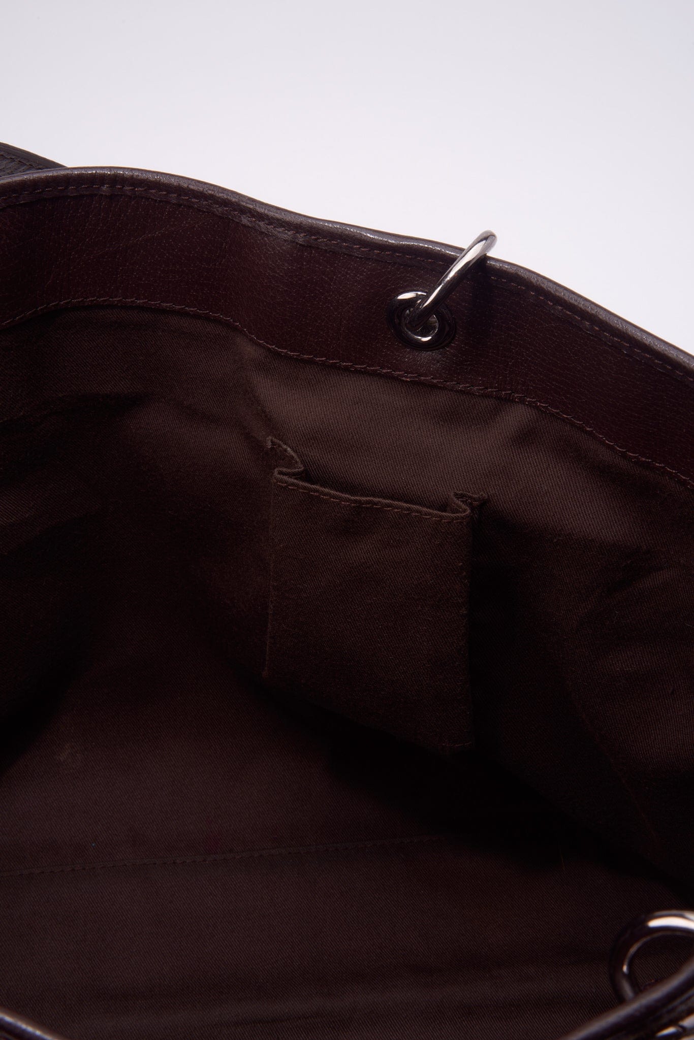 In der Tasche befindet sich eine braune Baumwollfutter.