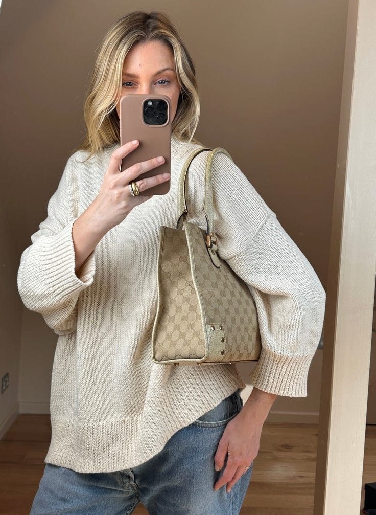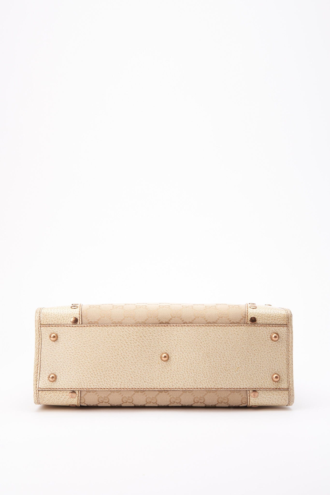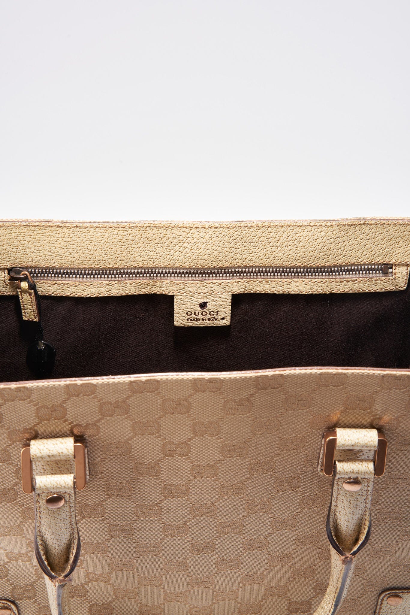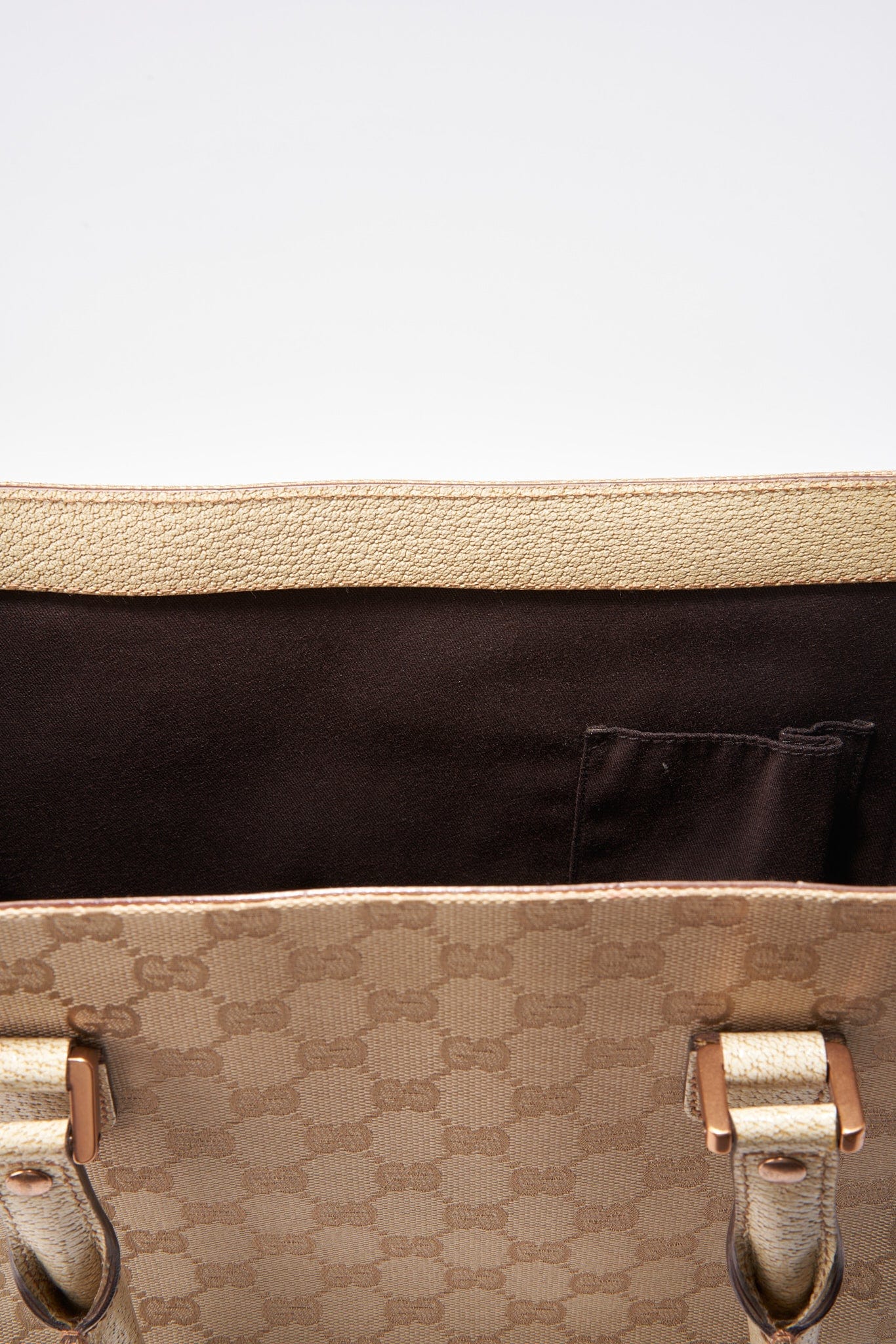 Eine atemberaubende Vintage -Gucci -Einkaufstasche aus der legendären GG -Beige -Leinwand mit Cream Leder -Ausstattung und Gucci -Marken -Messing -Hardware.
