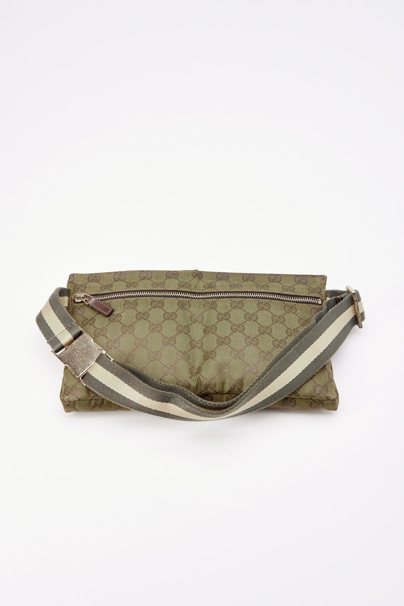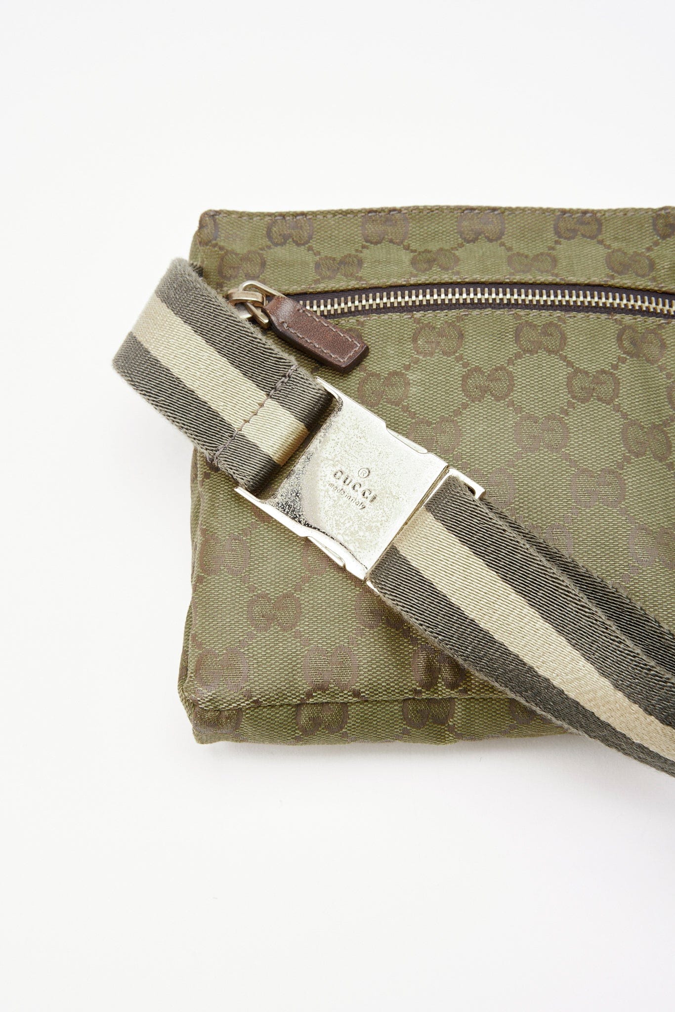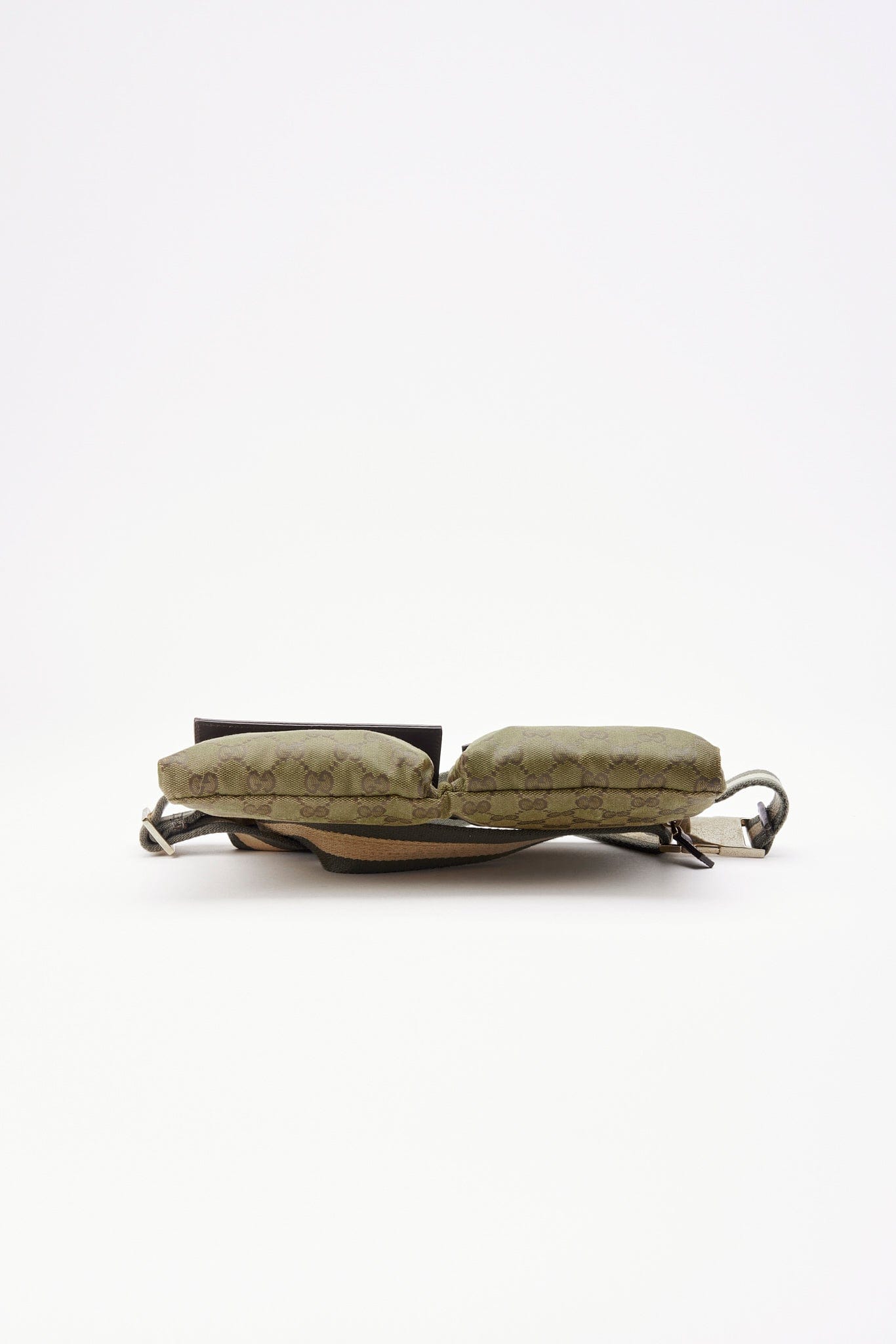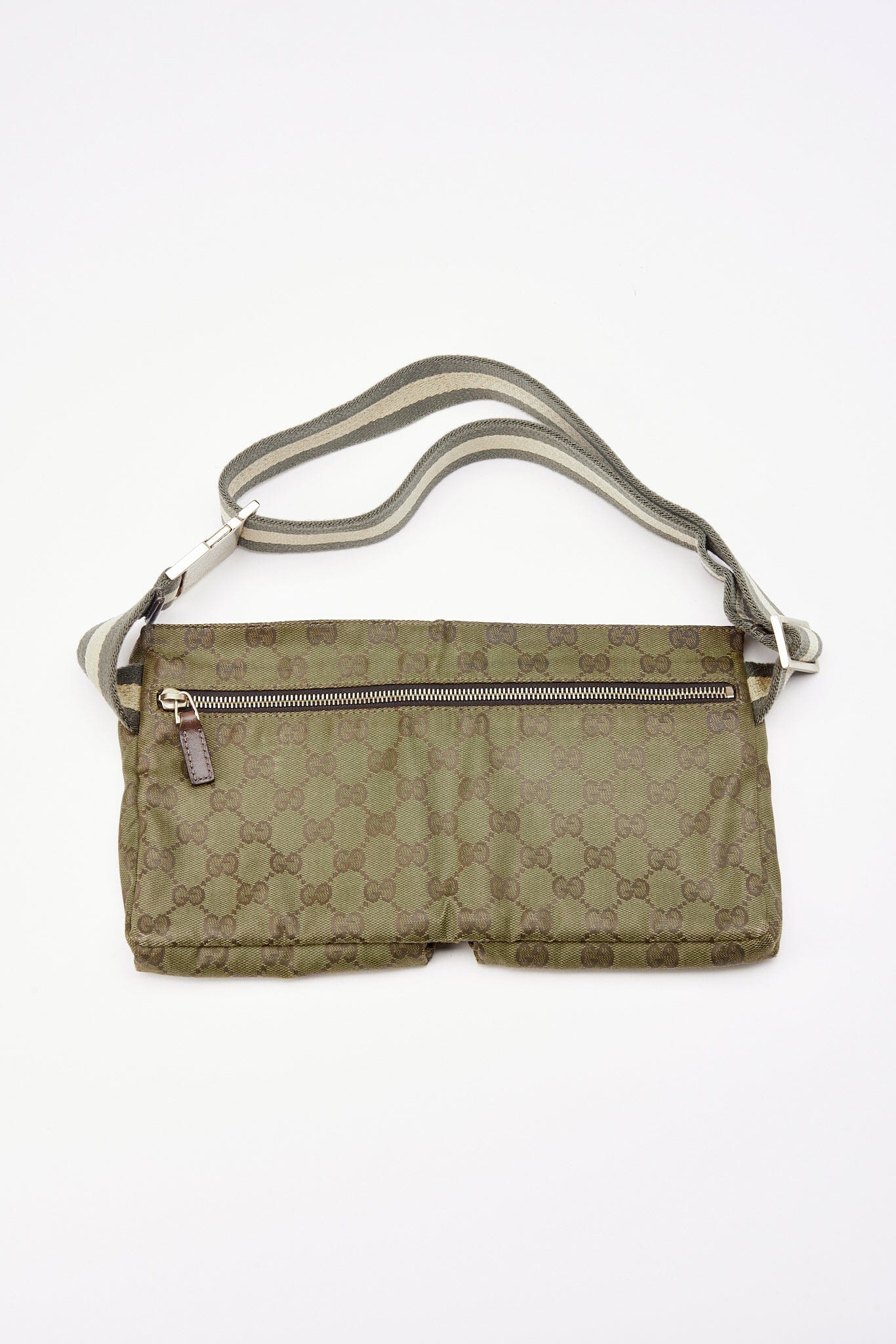 Vintage Gucci grüne GG -Leinwandgürtel oder Schlingbeutel