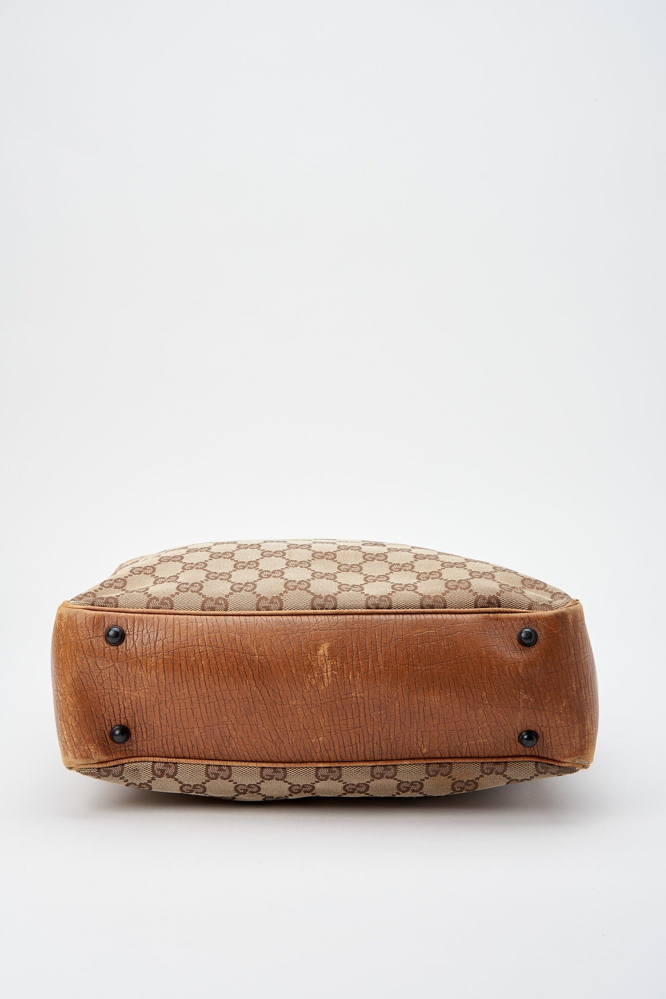 Eine atemberaubende Vintage -Gucci -Umhängetasche aus der legendären GG -Beige -Leinwand mit brauner Lederverkleidung und den legendären Bambusgriffen.