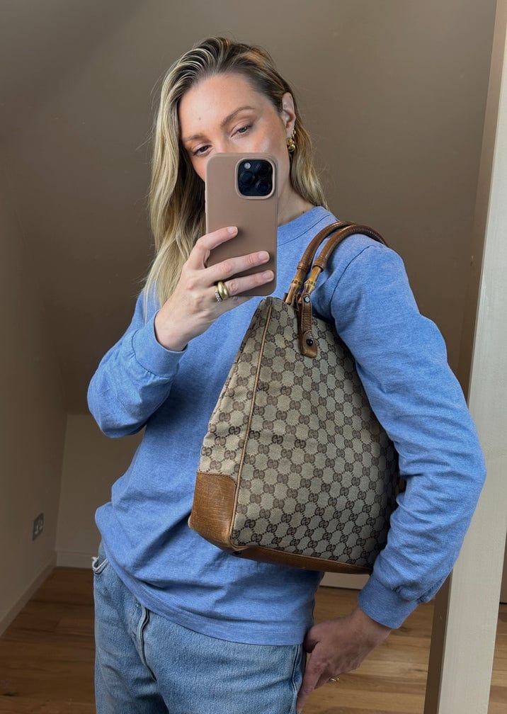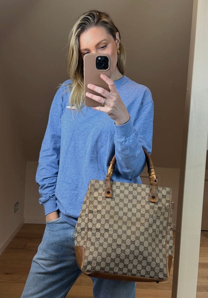 Vintage Gucci -Tasche mit Bambusgriff - Beige GG Leinwand