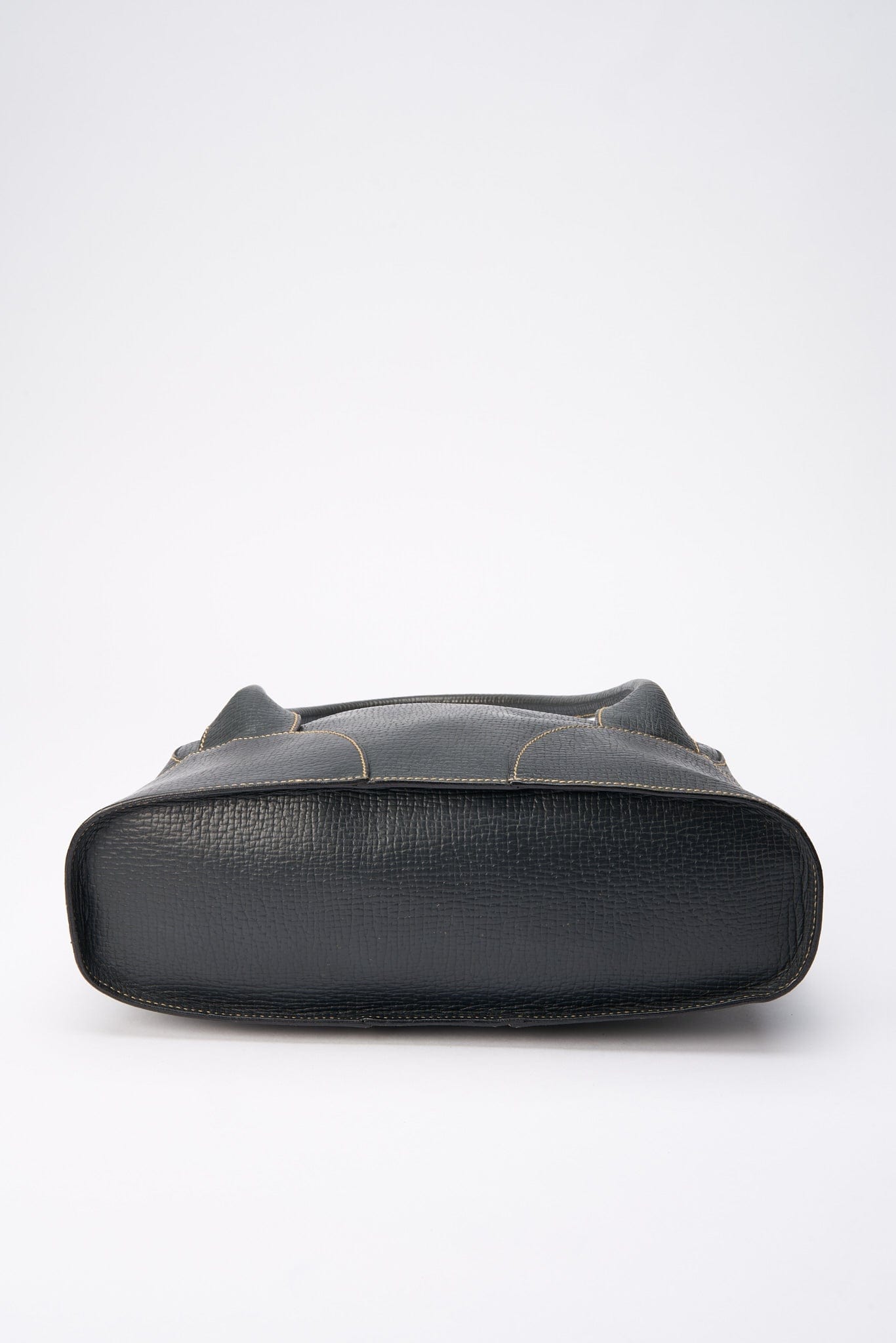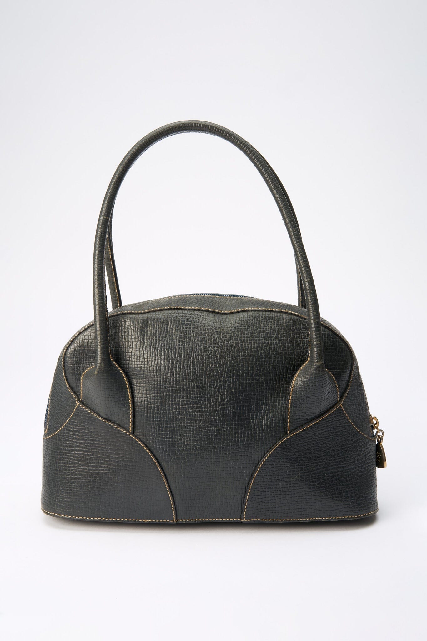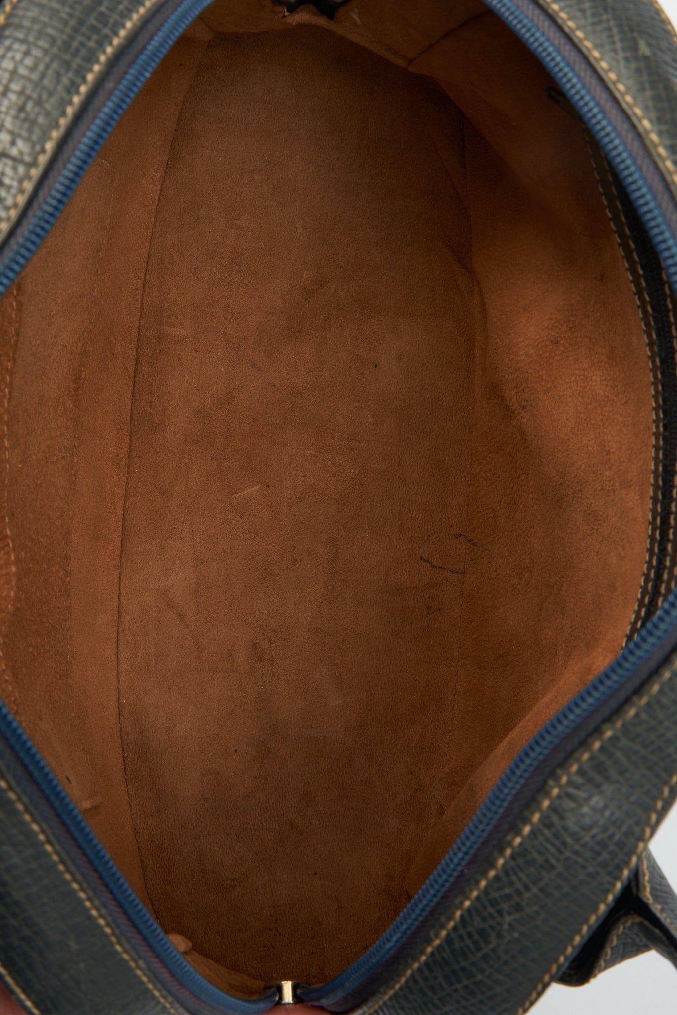 Eine zeitlose Vintage Loewe -Einkaufstasche, die aus einem strukturierten blau/grauen Leder mit goldener Hardware aus Loewe -Marke hergestellt wurde.
