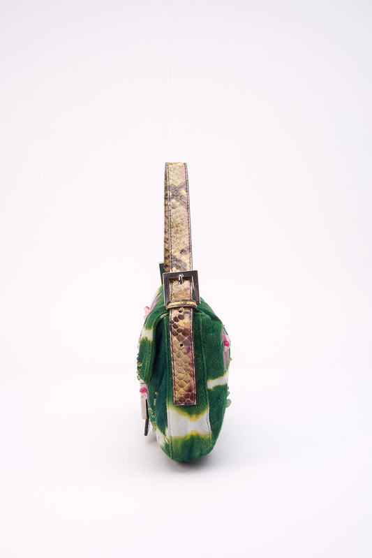 First introduced in 1997 by the brand's creative director at the time, Silvia Venturini Fendi, the Fendi Baguette bag quickly became a fashion sensation. The bag's unique design and compact size have contributed to its enduring popularity over the years. Available in a wide range of materials, including leather, fabric, and exotic skins, as well as various colours and patterns and showcasing Fendi's iconic FF logo, the Fendi Baguette bag is one of the most iconic and recognisable Fendi handbag.