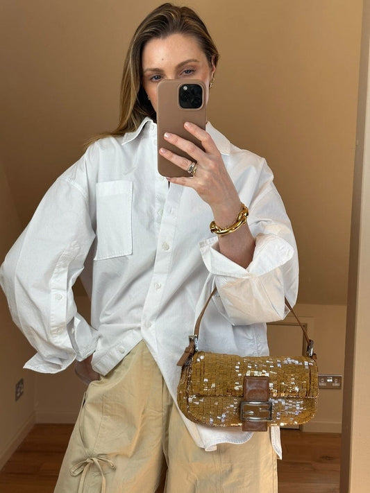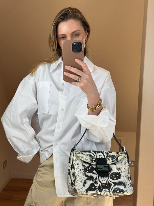 First introduced in 1997 by the brand's creative director at the time, Silvia Venturini Fendi, the Fendi Baguette bag quickly became a fashion sensation. The bag's unique design and compact size have contributed to its enduring popularity over the years. Available in a wide range of materials, including leather, fabric, and exotic skins, as well as various colours and patterns and showcasing Fendi's iconic FF logo, the Fendi Baguette bag is one of the most iconic and recognisable Fendi handbag.