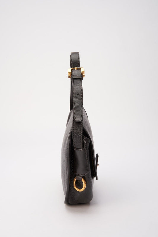 Vintage Bottega Veneta Black Intrecciato Leather Hobo Shoulder Bag