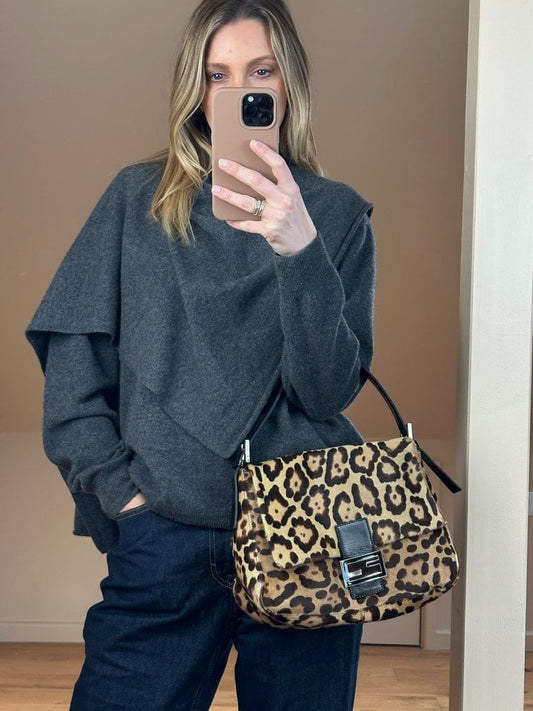 Christian Dior Vintage Leopard Calf Hair Top Handle Bag