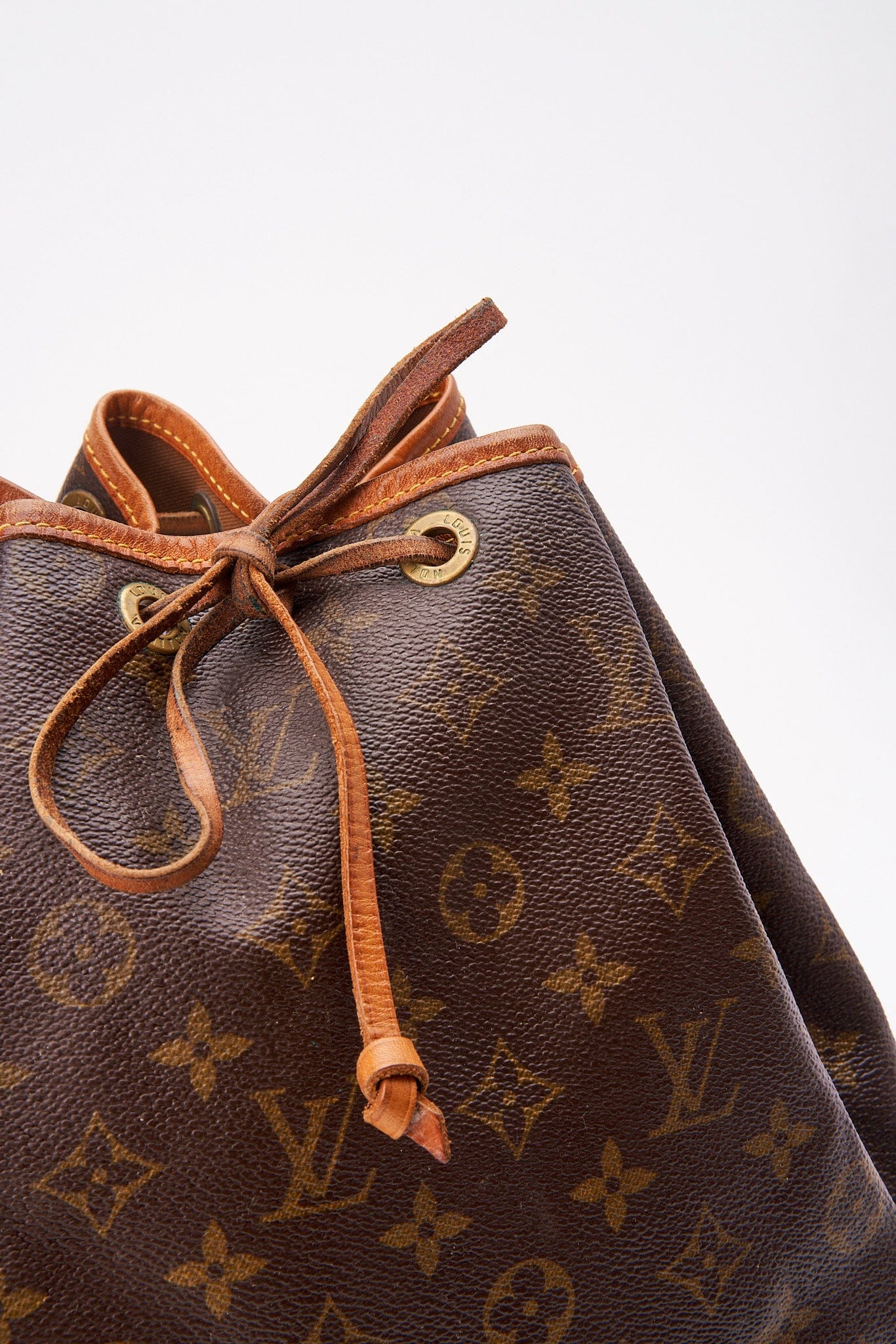 The Noé bucket bag was originally designed in 1932. A Champagne producer asked Gaston-Louis Vuitton to develop a sturdy, stylish bag in which he could transport five bottles of bubbly. Made in the iconic Louis Vuitton Monogram canvas with a leather base and a drawstring leather closure.