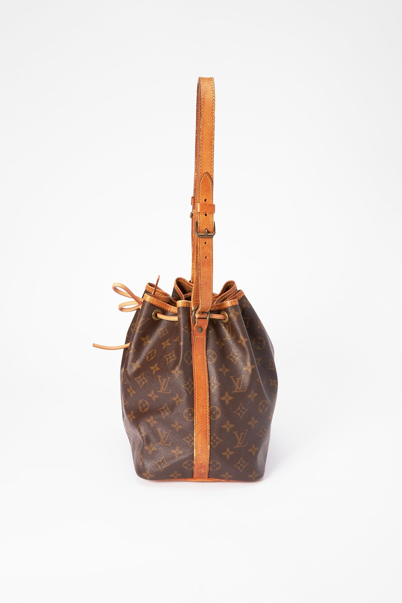 The Noé bucket bag was originally designed in 1932. A Champagne producer asked Gaston-Louis Vuitton to develop a sturdy, stylish bag in which he could transport five bottles of bubbly. The Petit Noé is a compact version, made in the iconic Louis Vuitton Monogram canvas and retains key features of the original – the iconic shape, generous capacity, drawstring closure – but is made for modern life.
