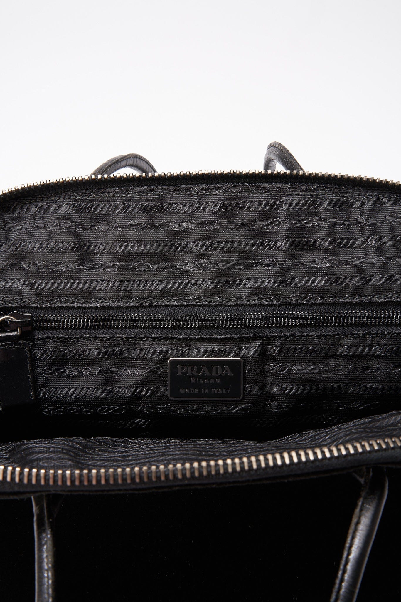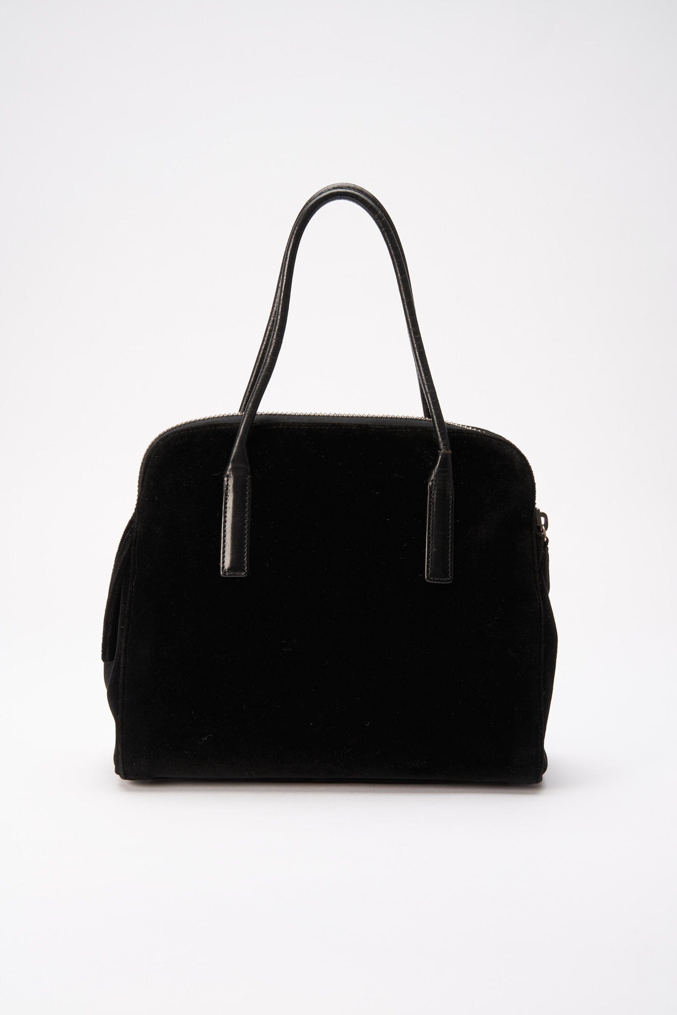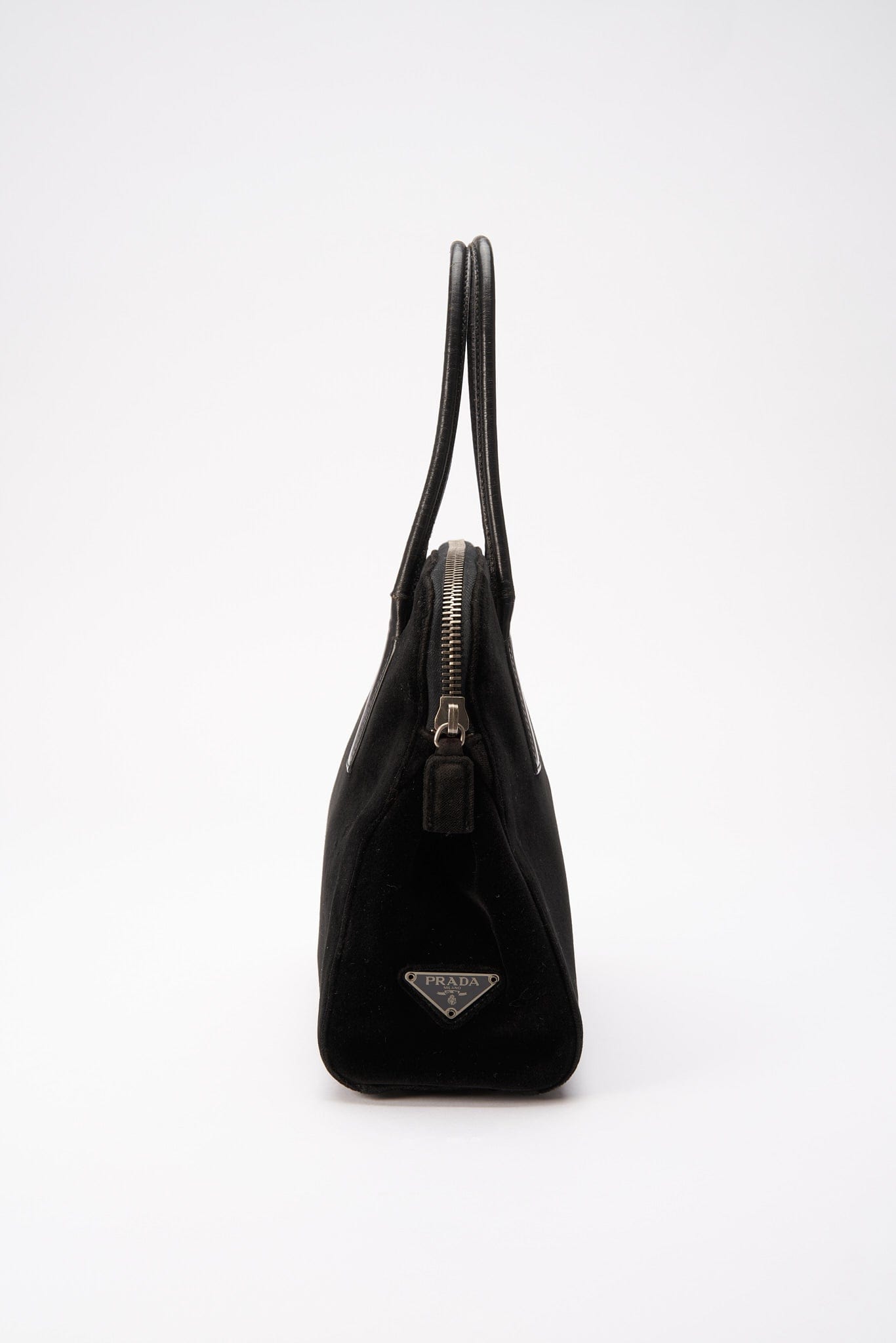 Prada Black Velvet Shoulder Bag with Leather Handles