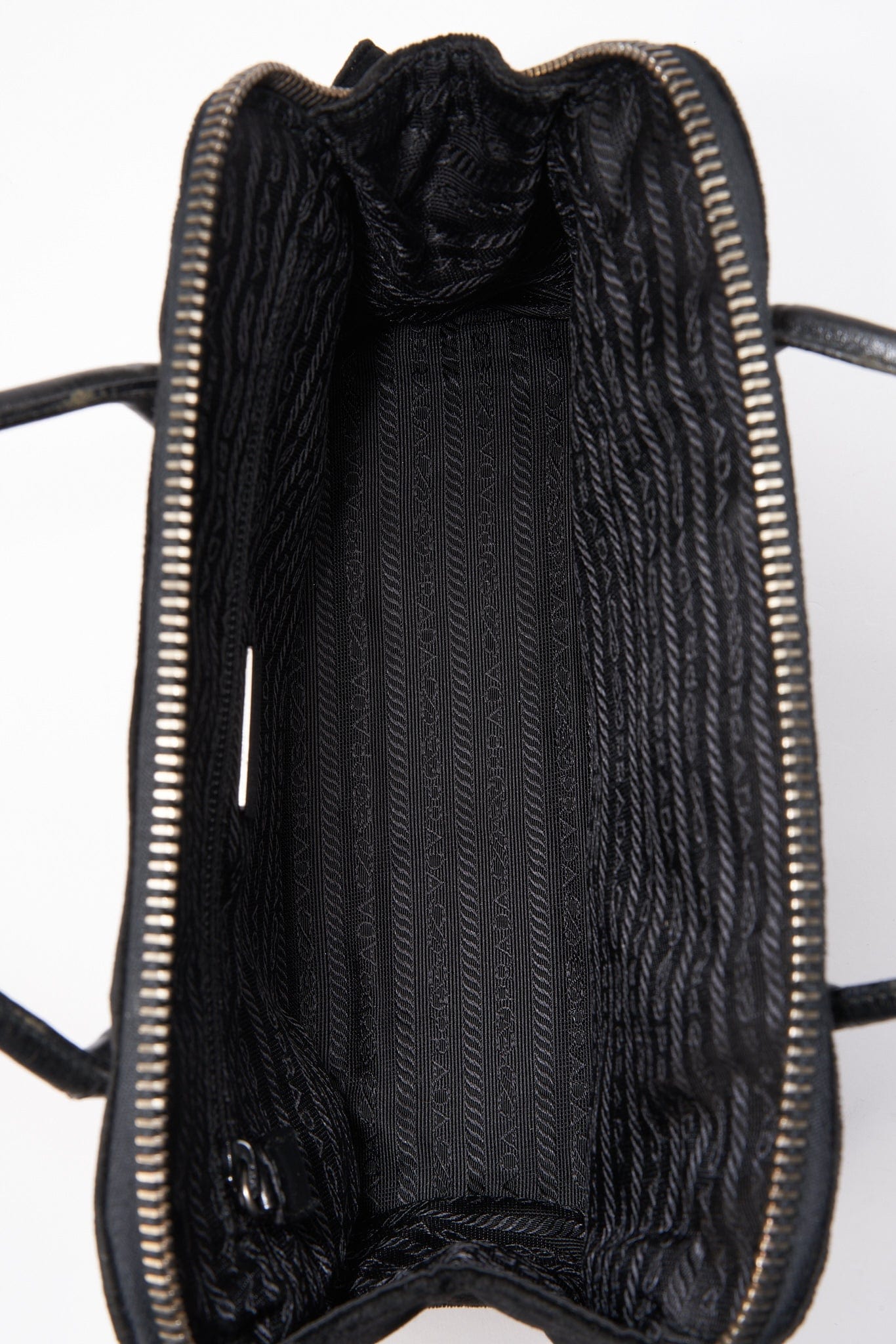 Inside there is a zipped pocket for your valuables. The bag is lined with the iconic Prada logo nylon lining.