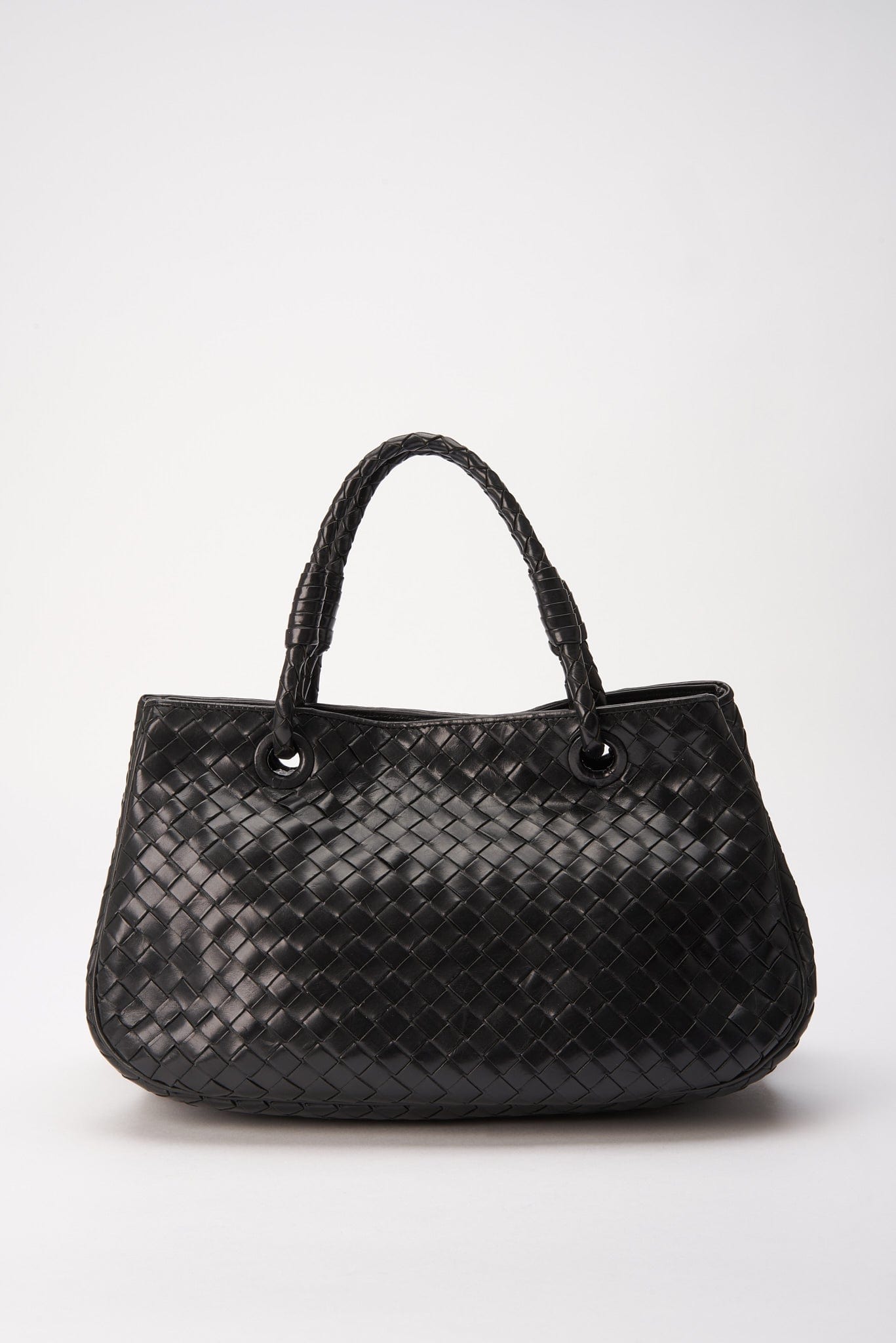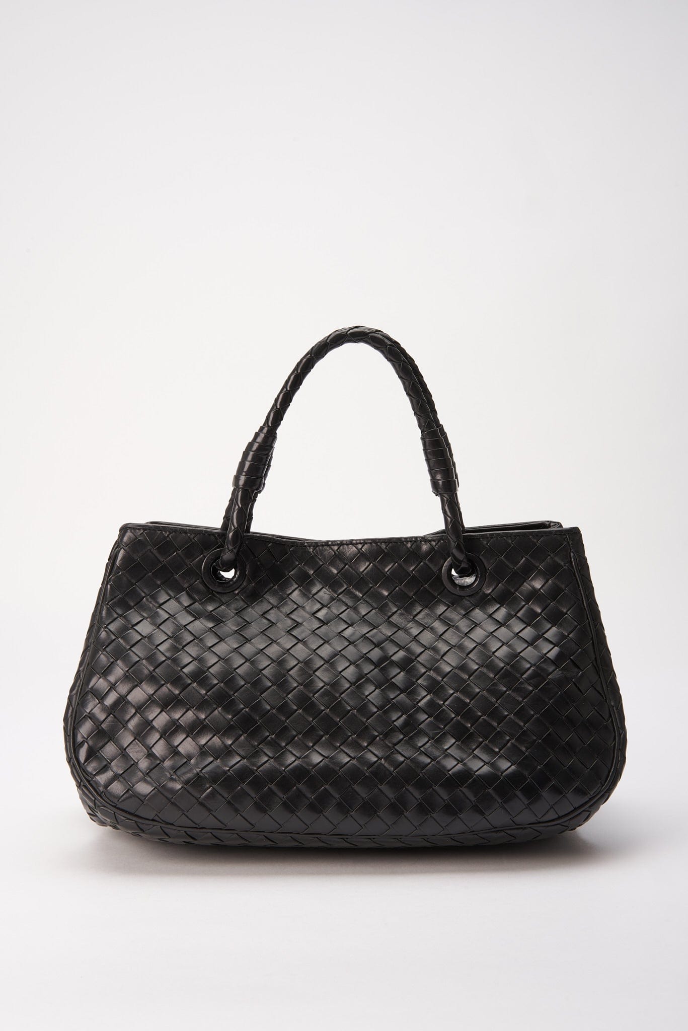 A beautiful vintage black Bottega Veneta Intrecciato Leather Tote.