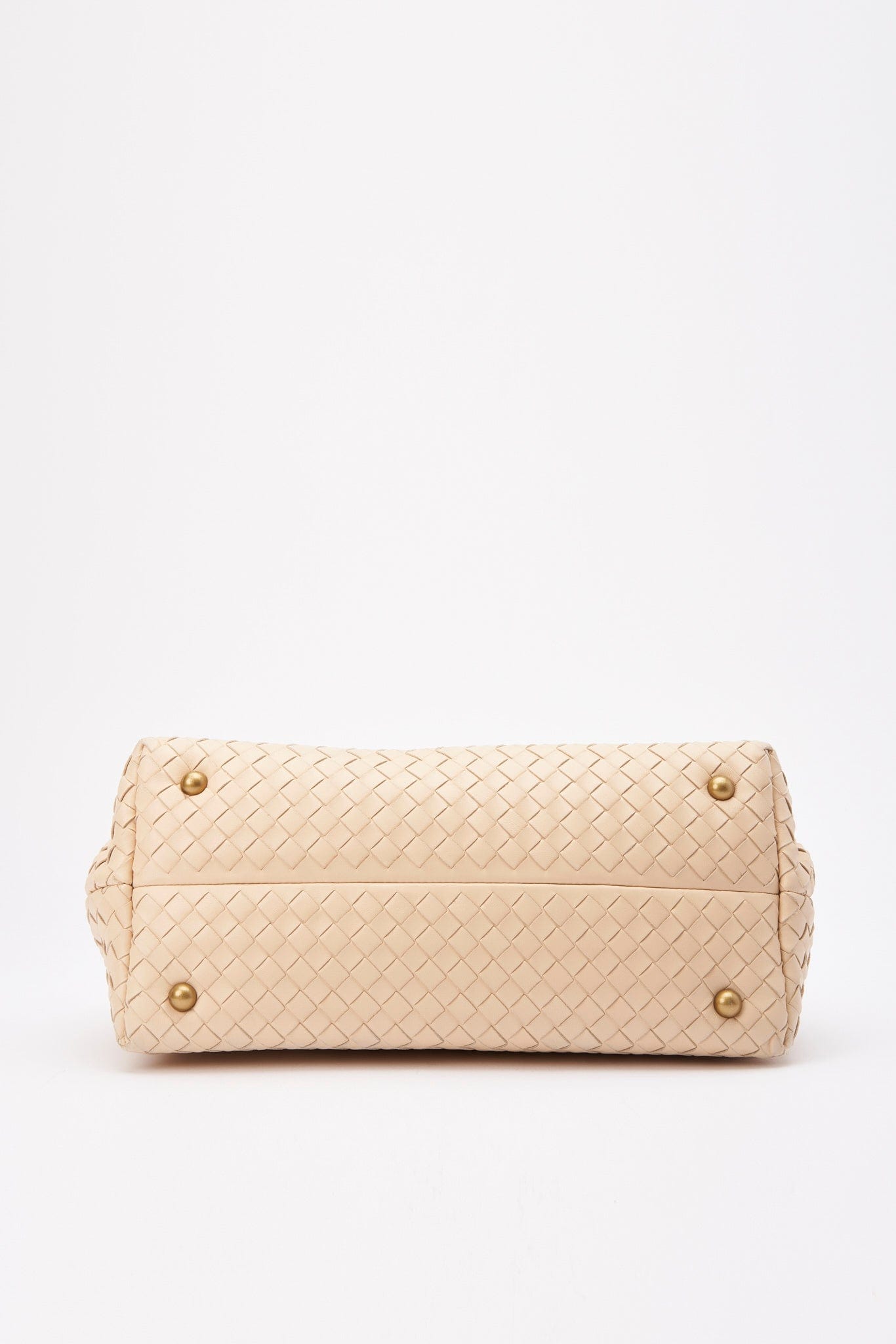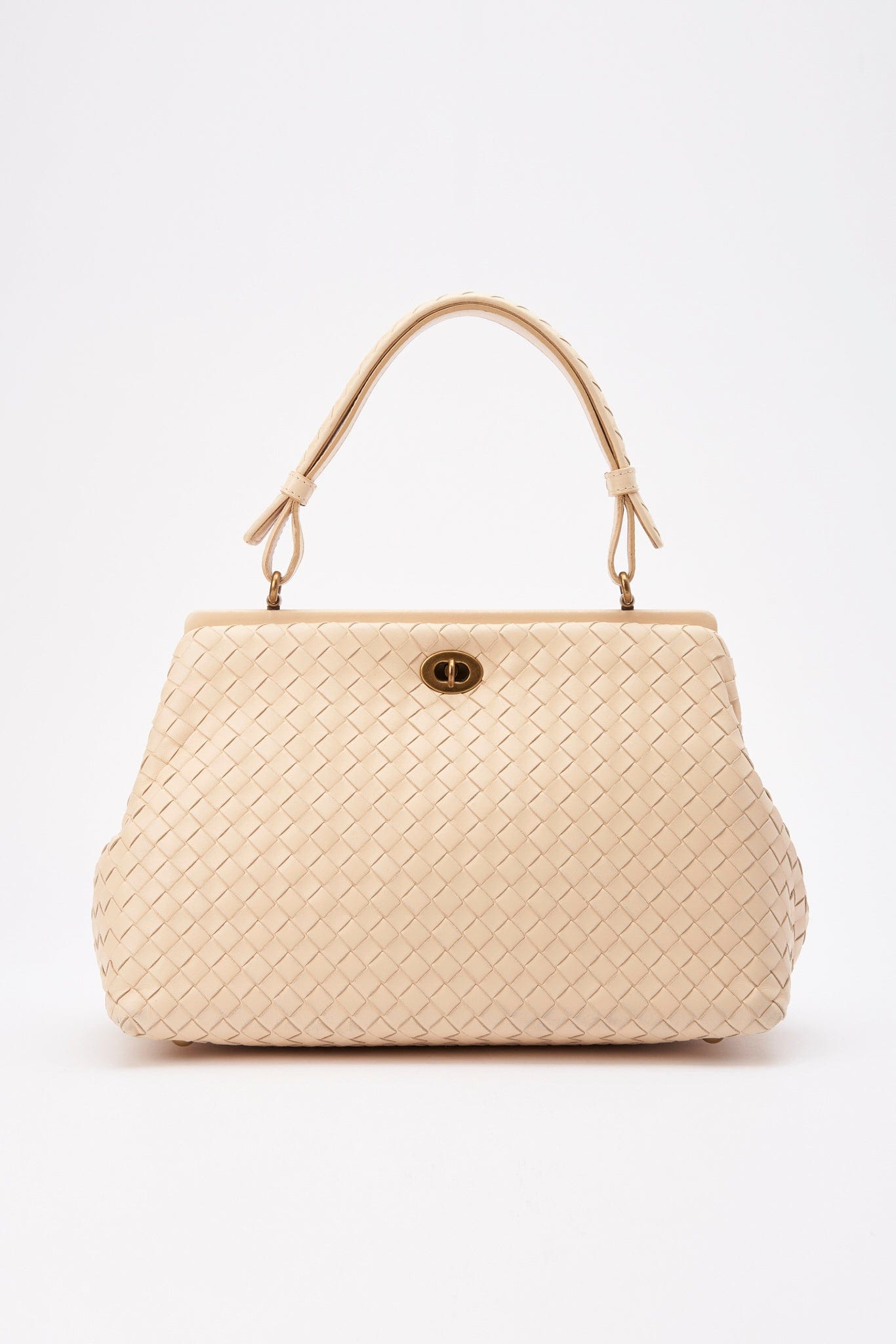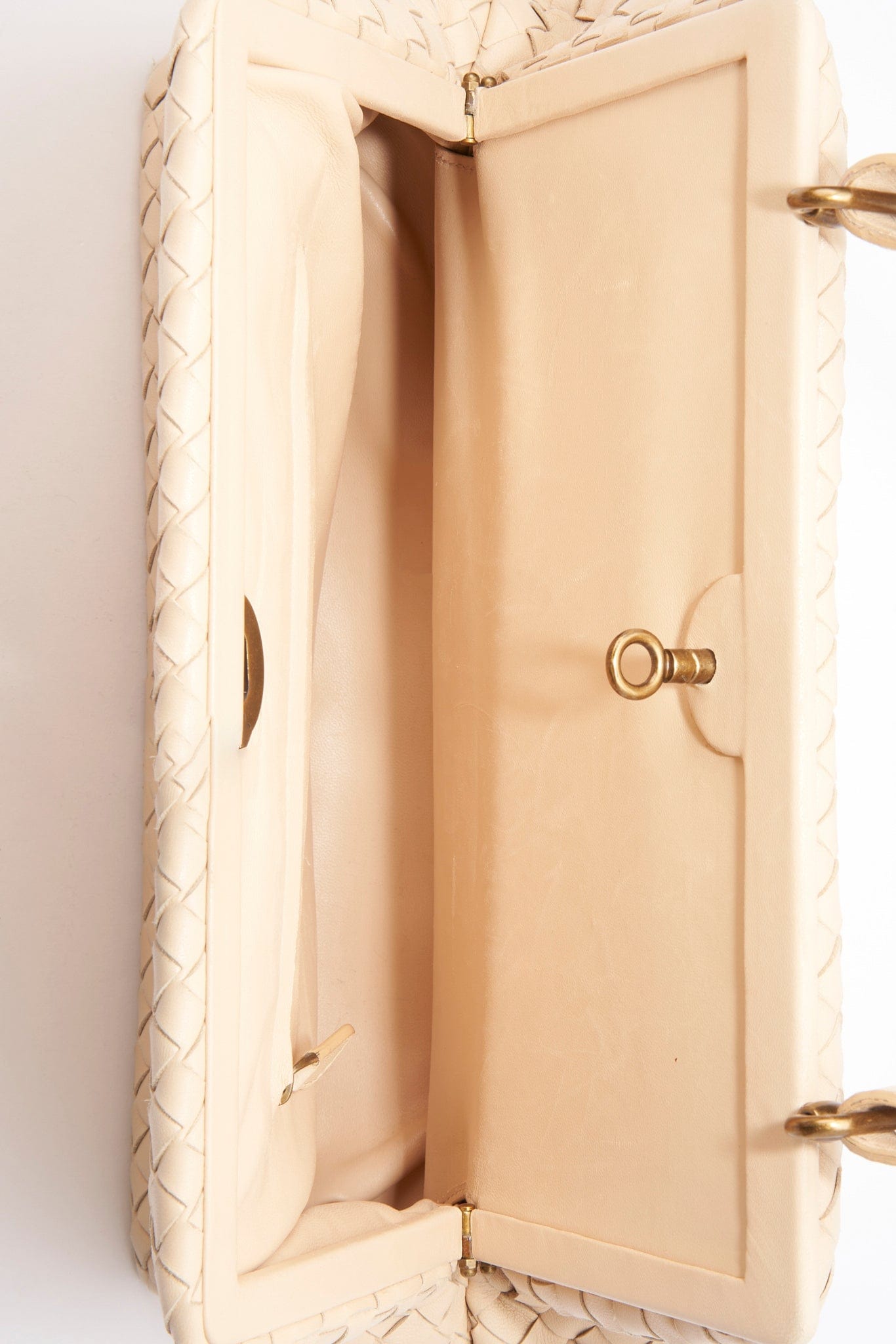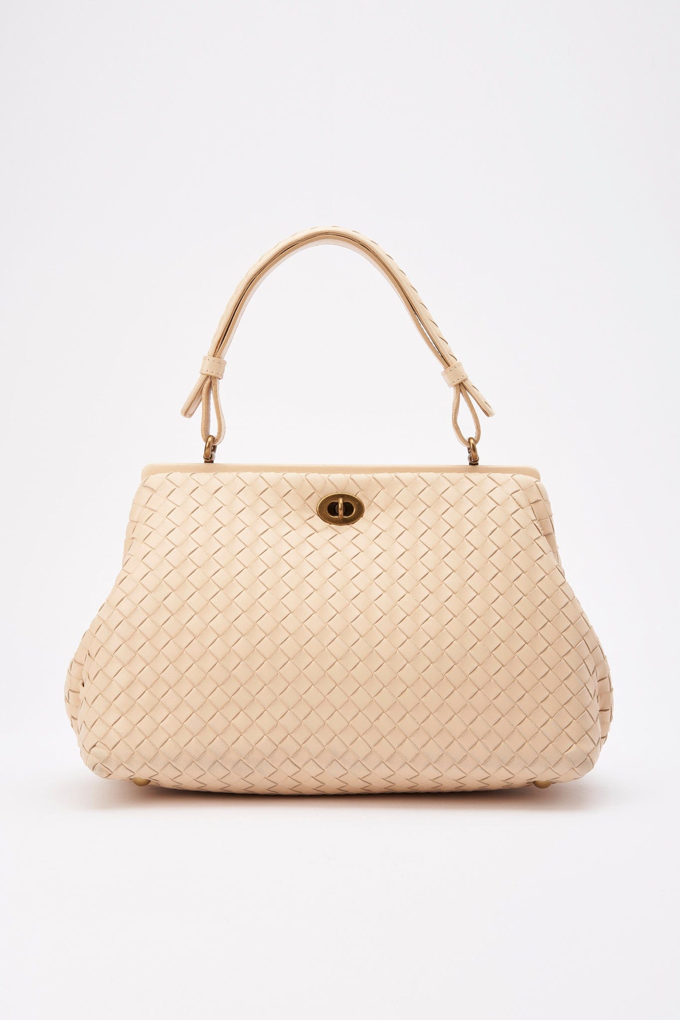Vintage Bottega Veneta Cream Intrecciato Leather Top Handle Bag