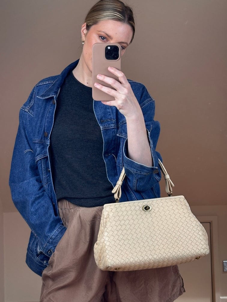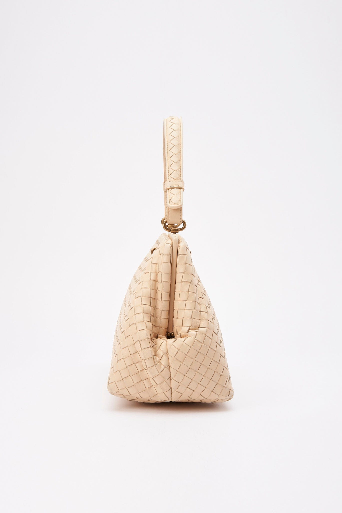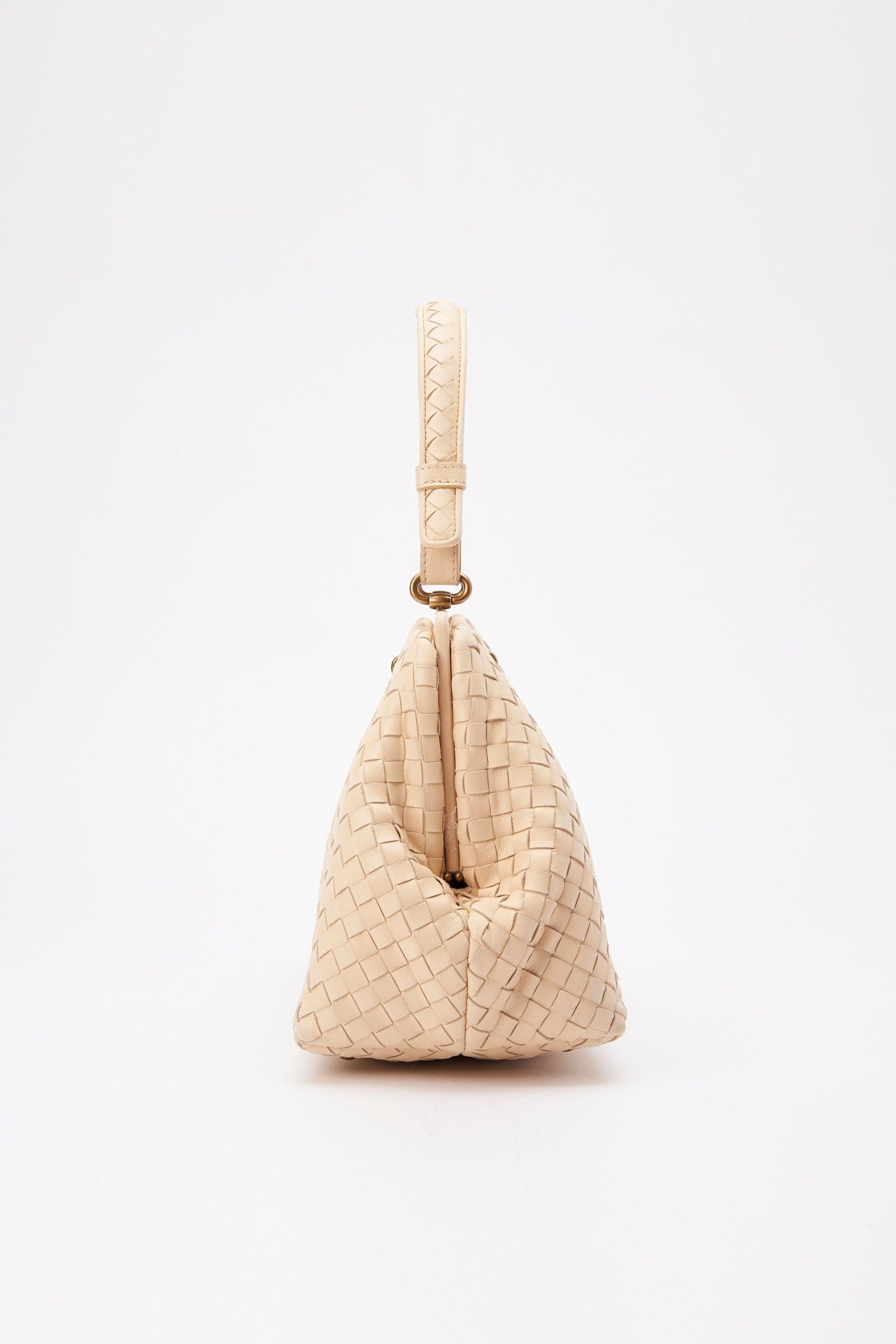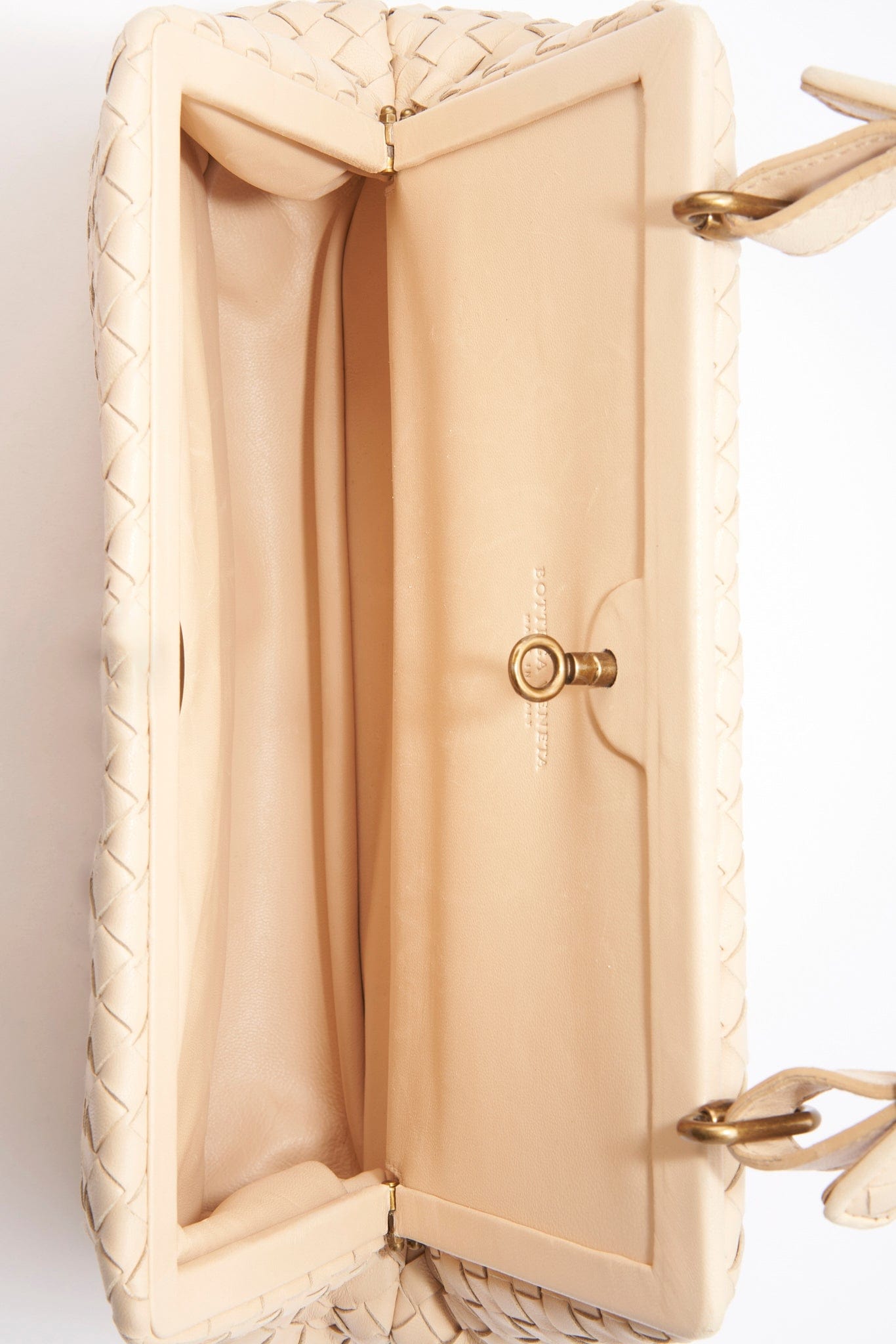 Vintage Bottega Veneta Cream Intrecciato Leather Top Handle Bag