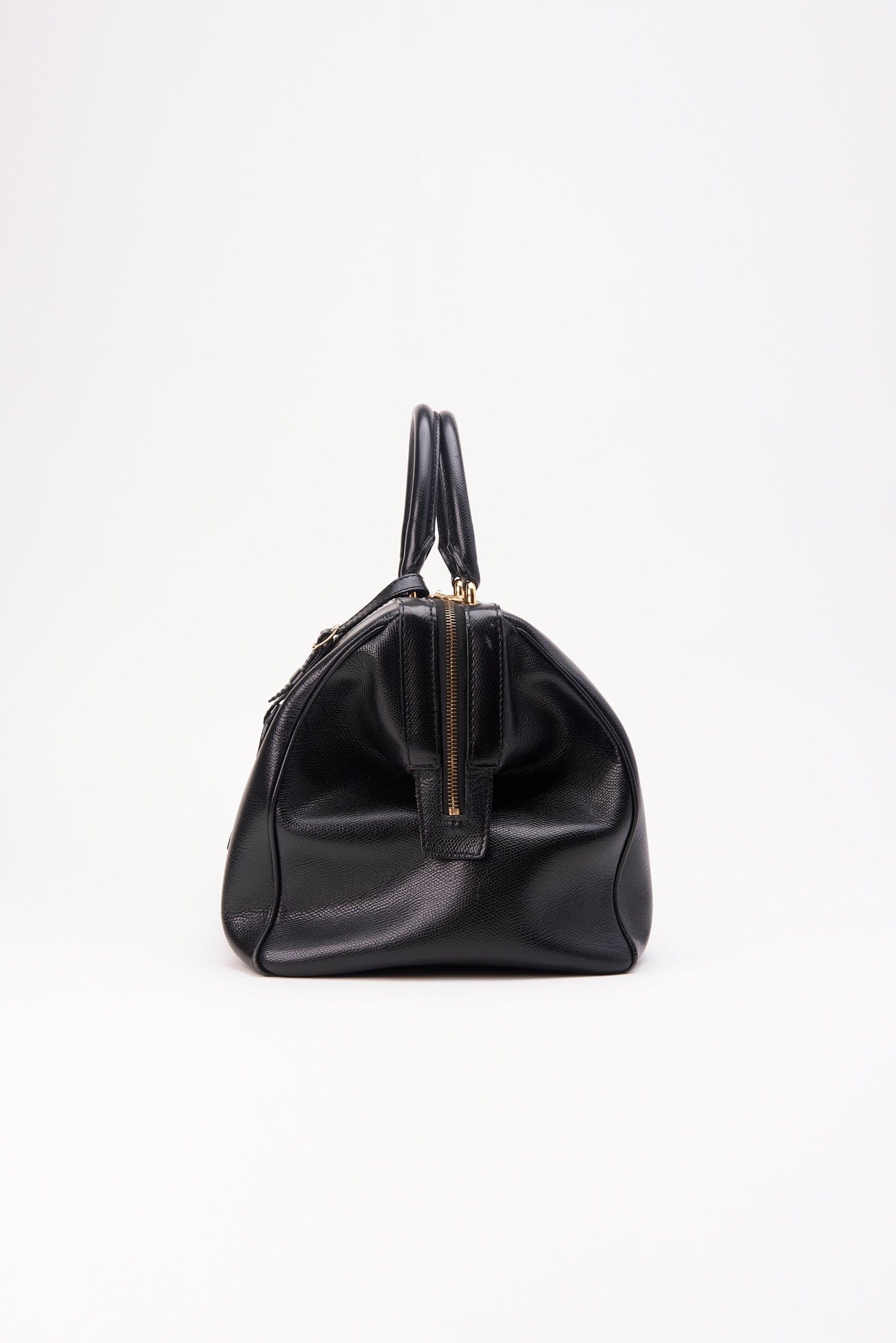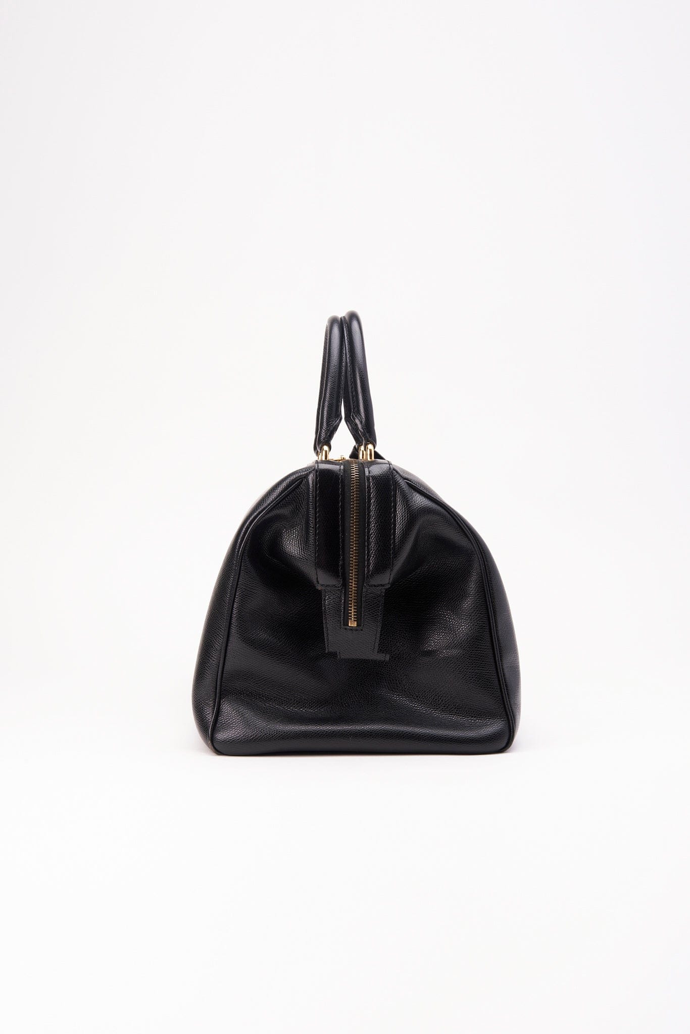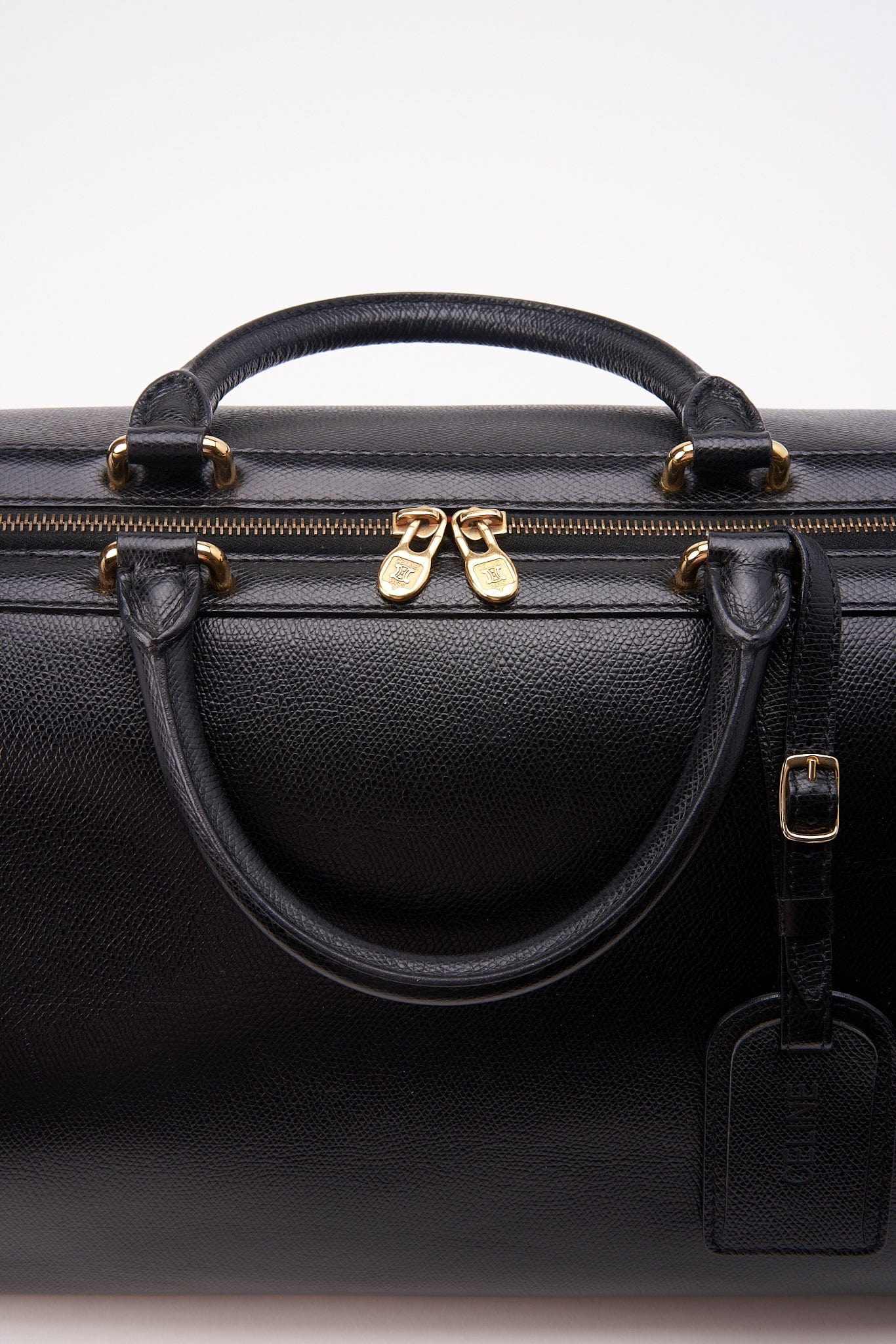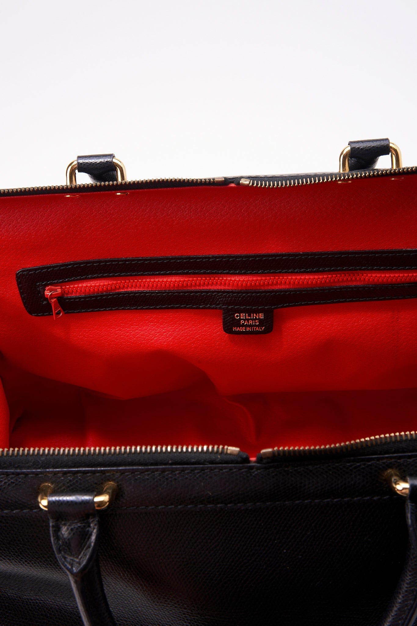 A stunning vintage Celine doctors style bag crafted from a grained black leather with gold hardware, including Celine tag, padlock and key.
