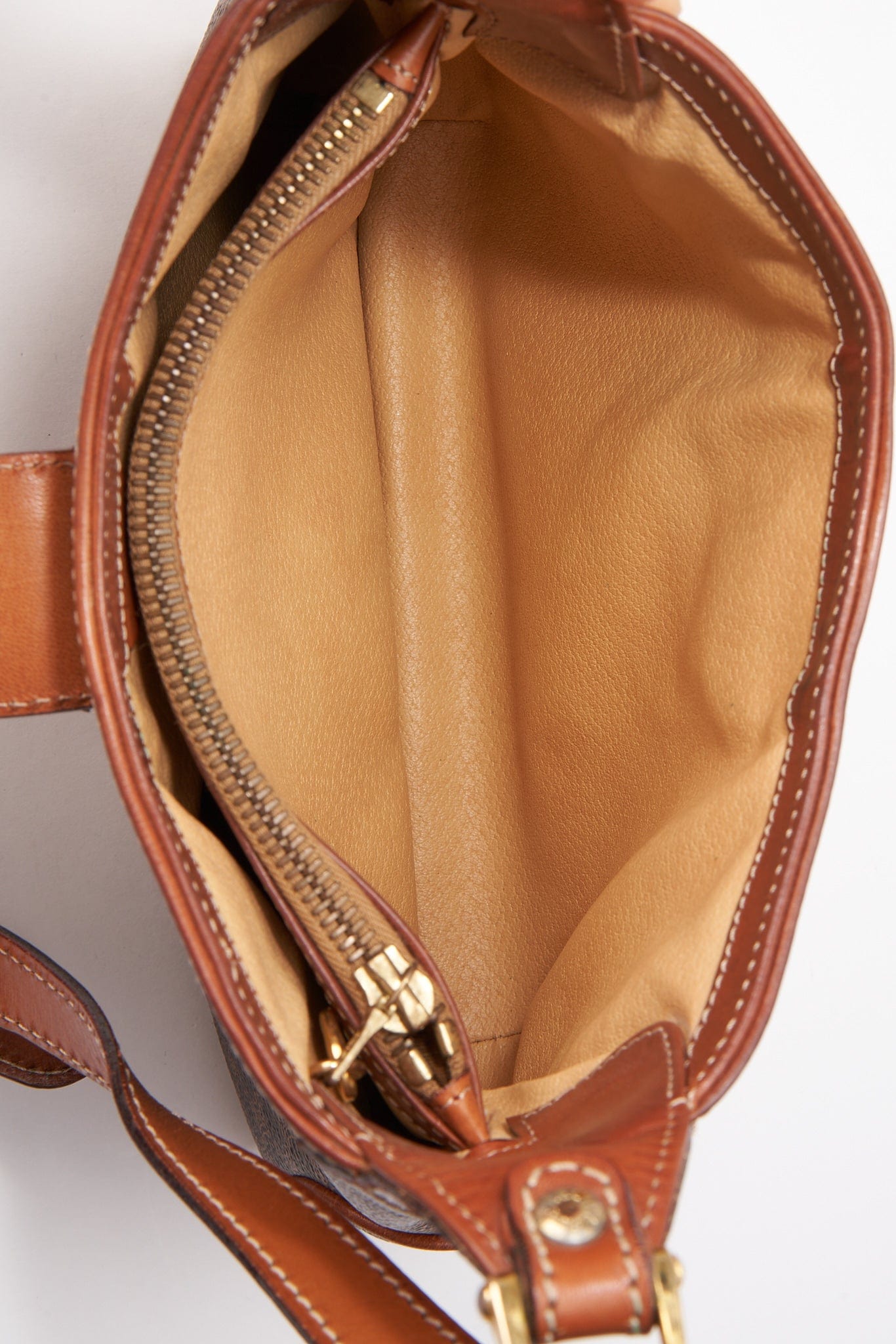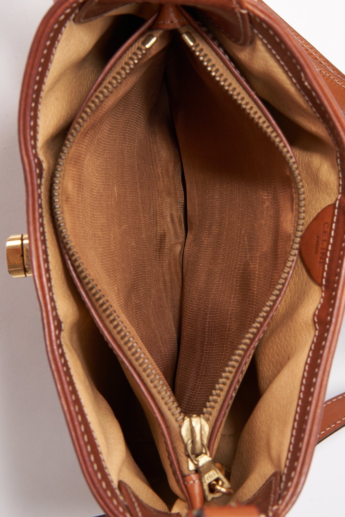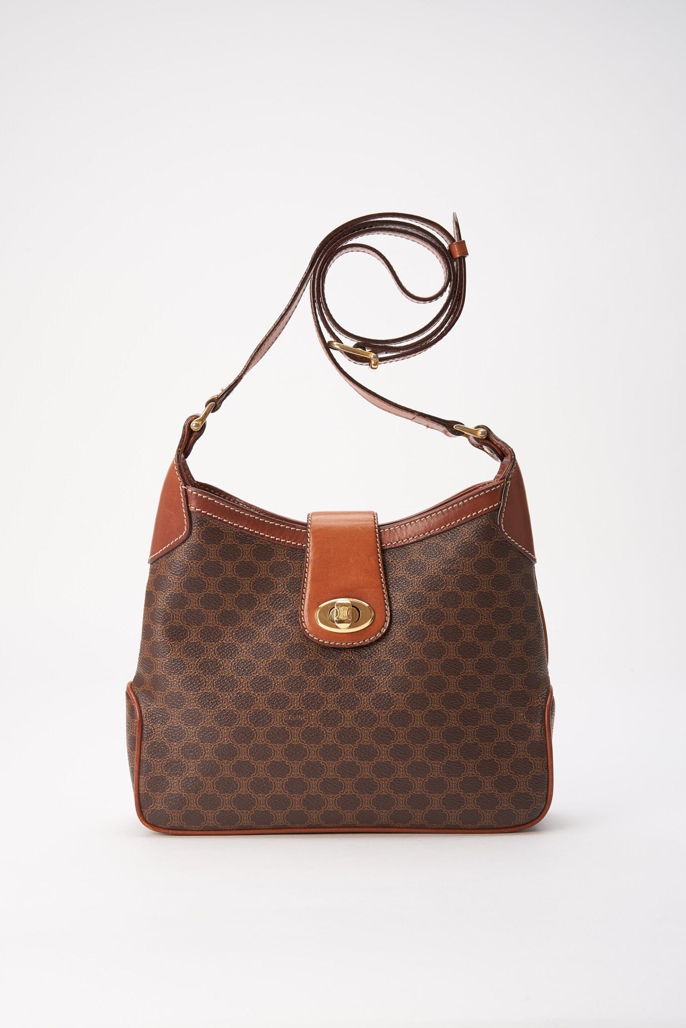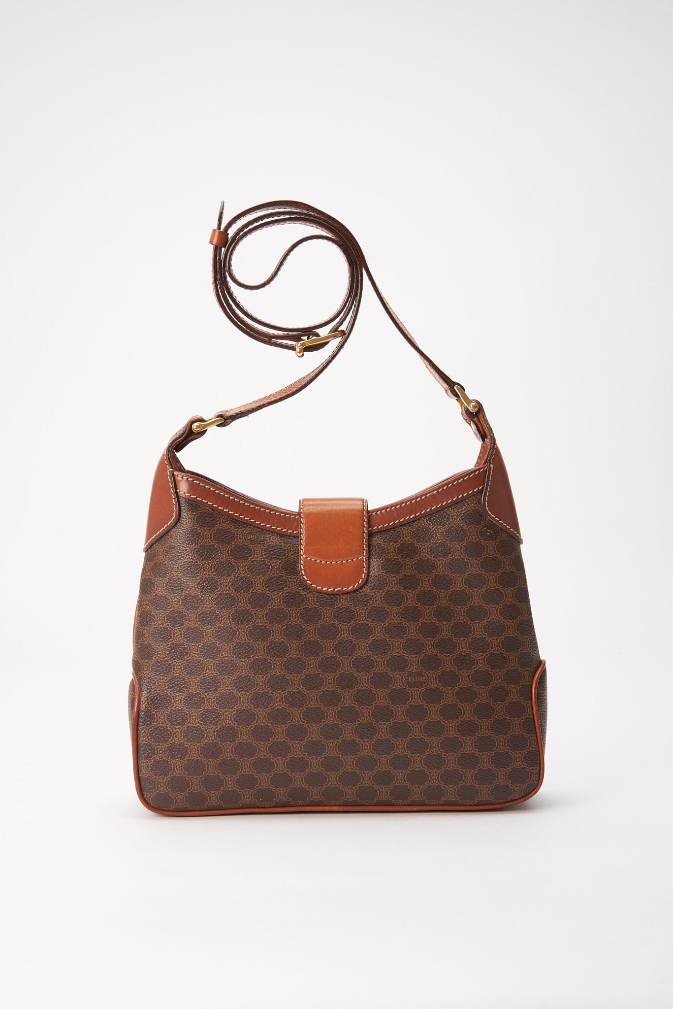 Crafted from a tan smooth leather, Celine monogram canvas with an adjustable strap.