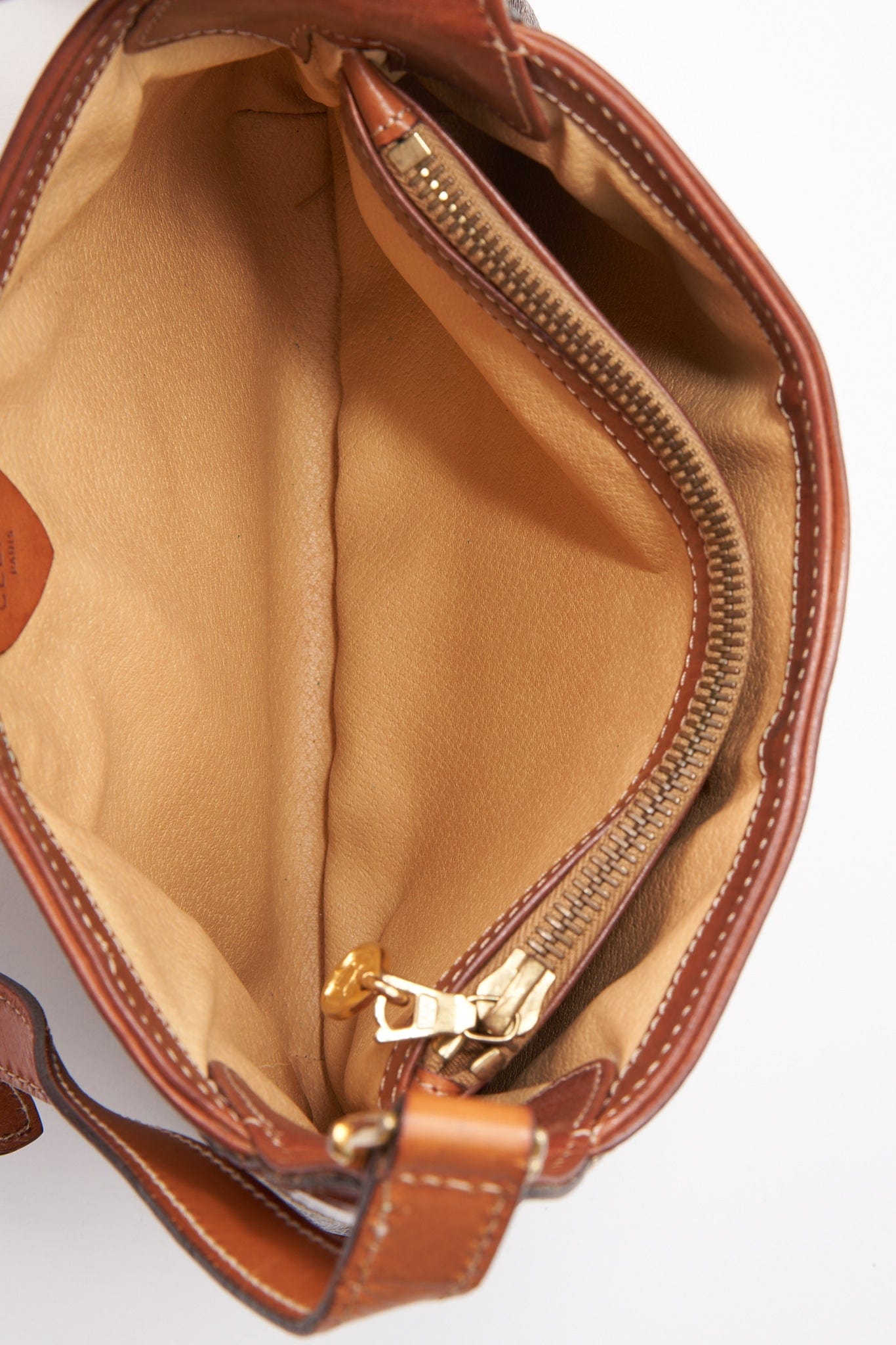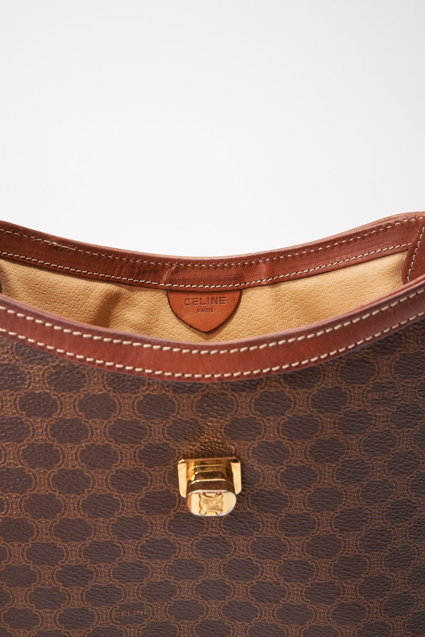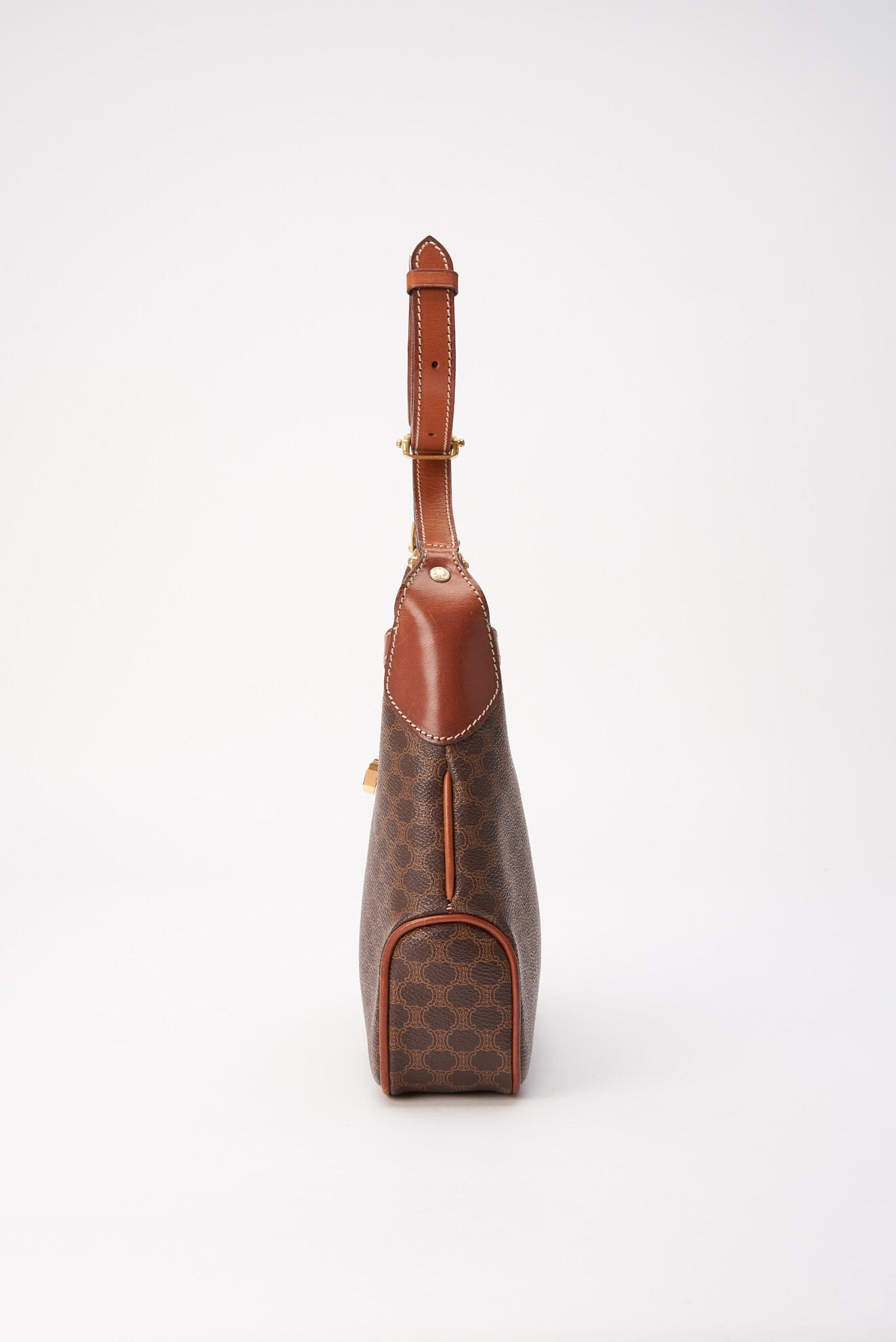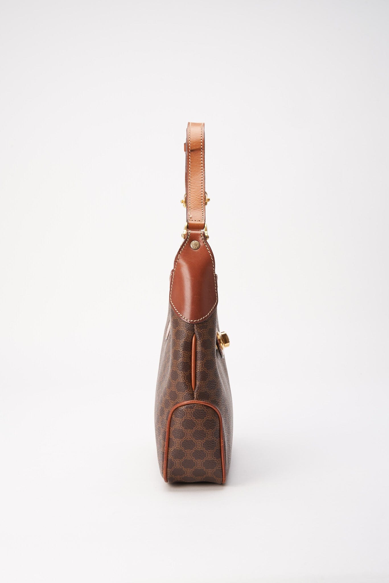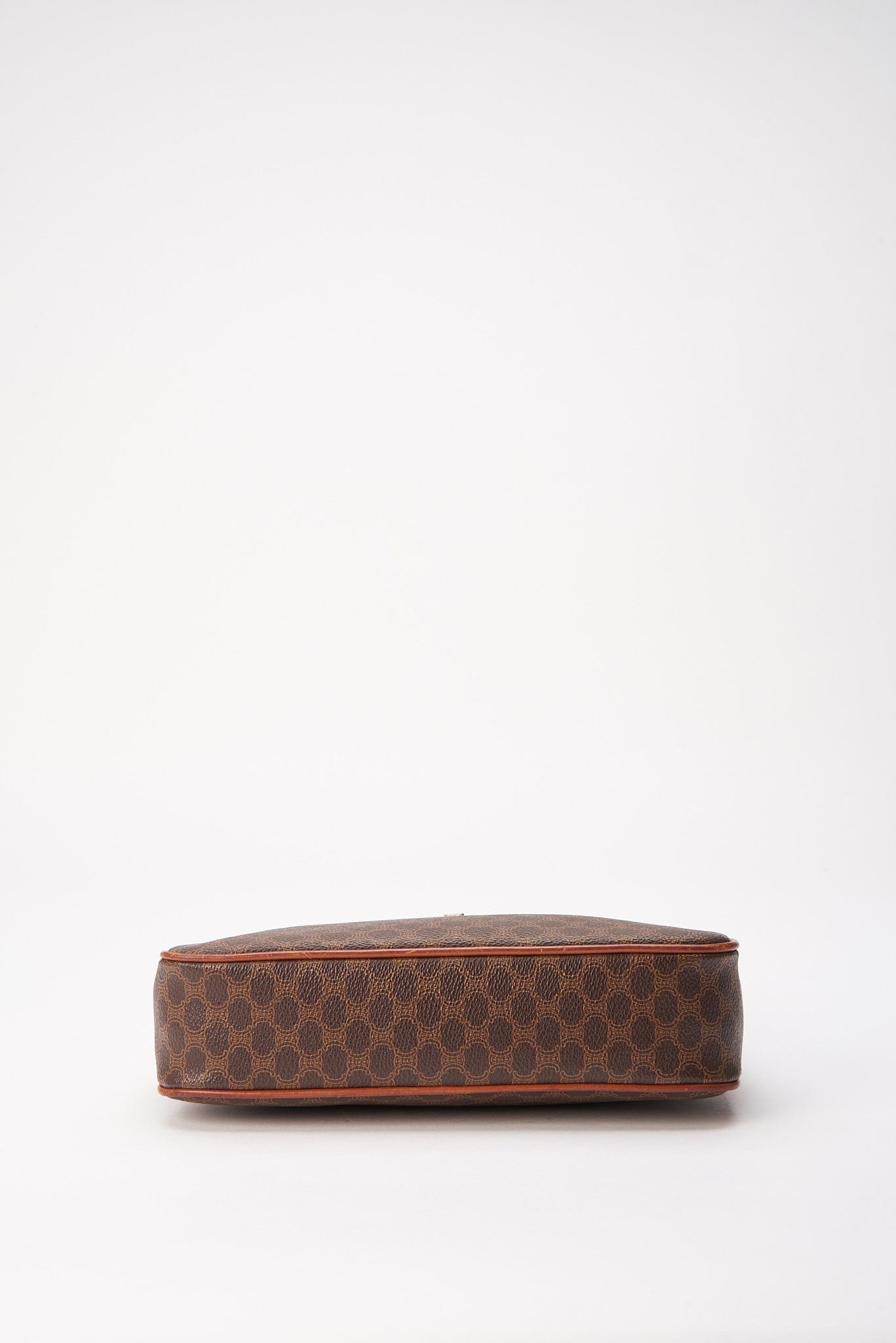 Crafted from a tan smooth leather, Celine monogram canvas with an adjustable strap.
