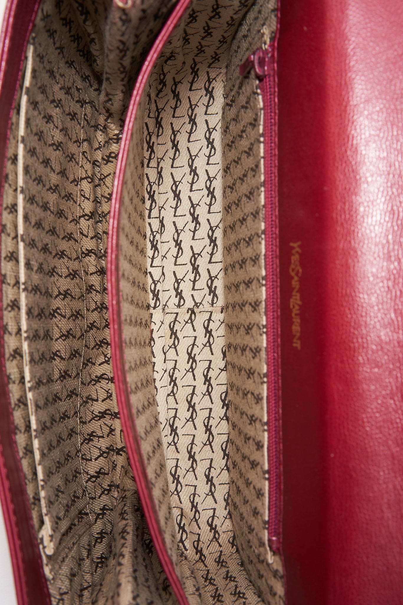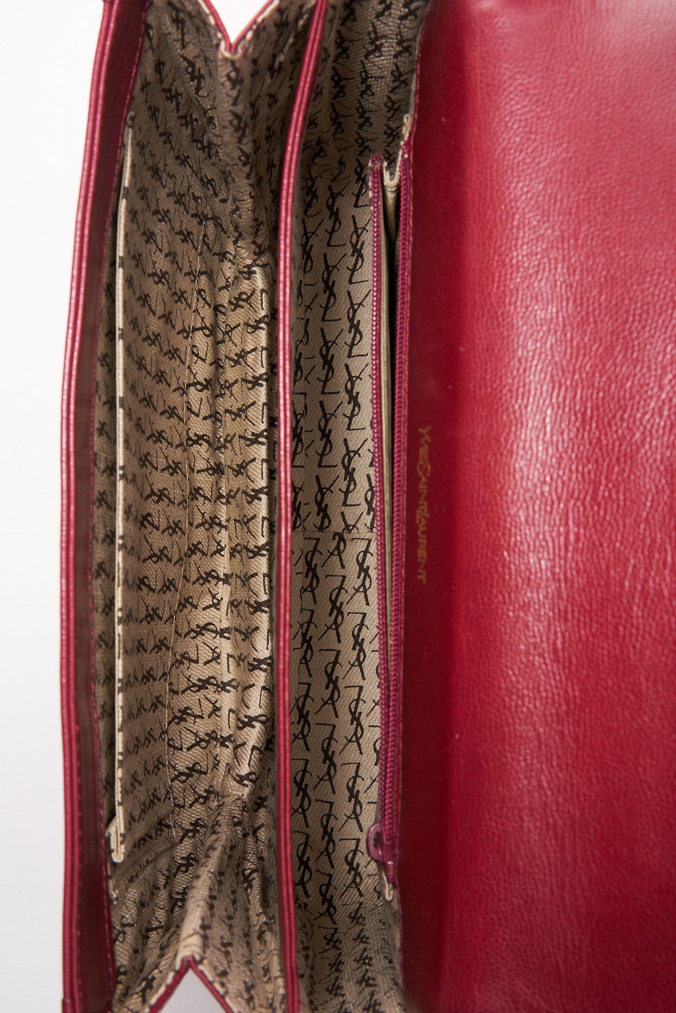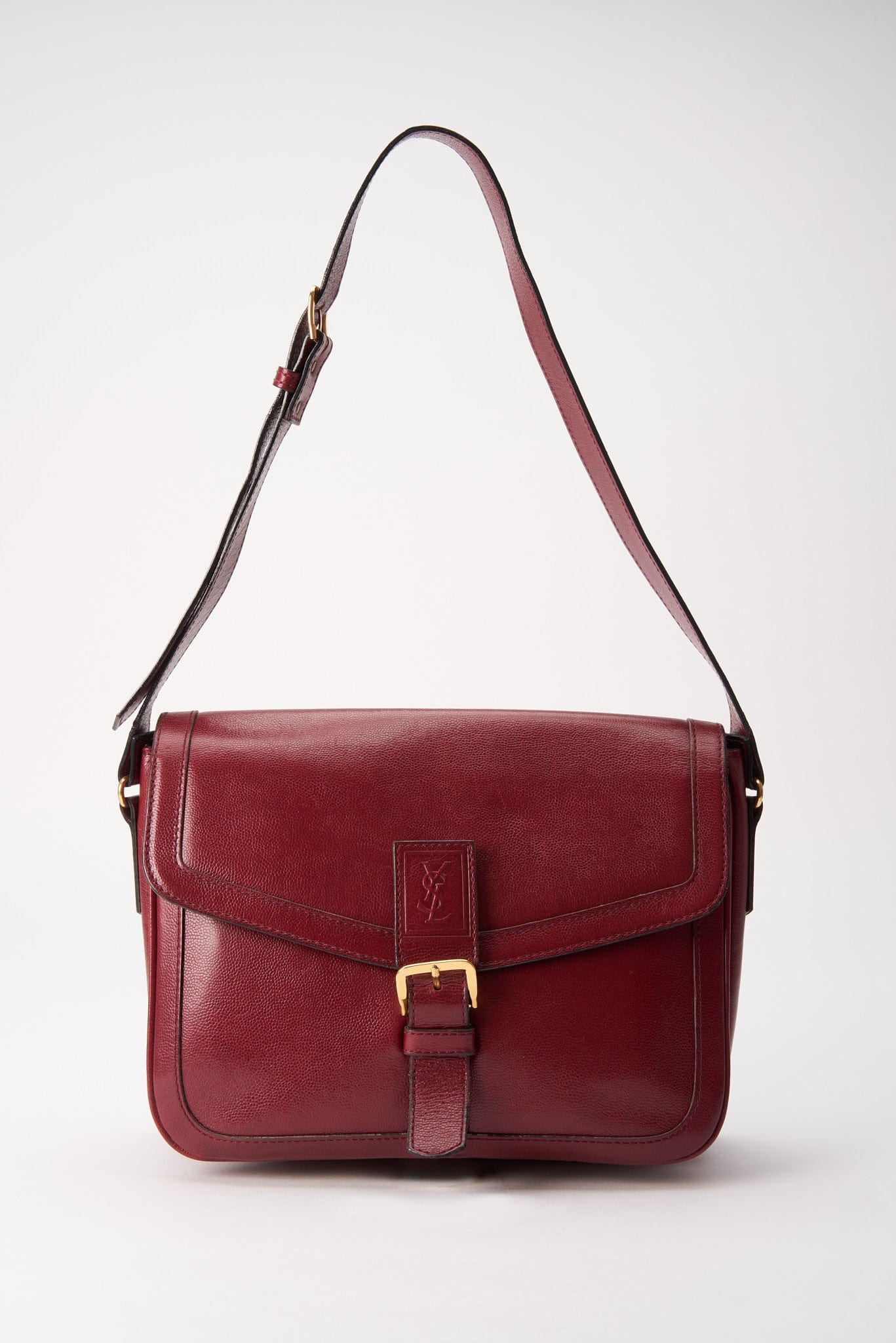A chic YSL satchel style bag crafted from a textured red leather, this style is timeless and minimal.