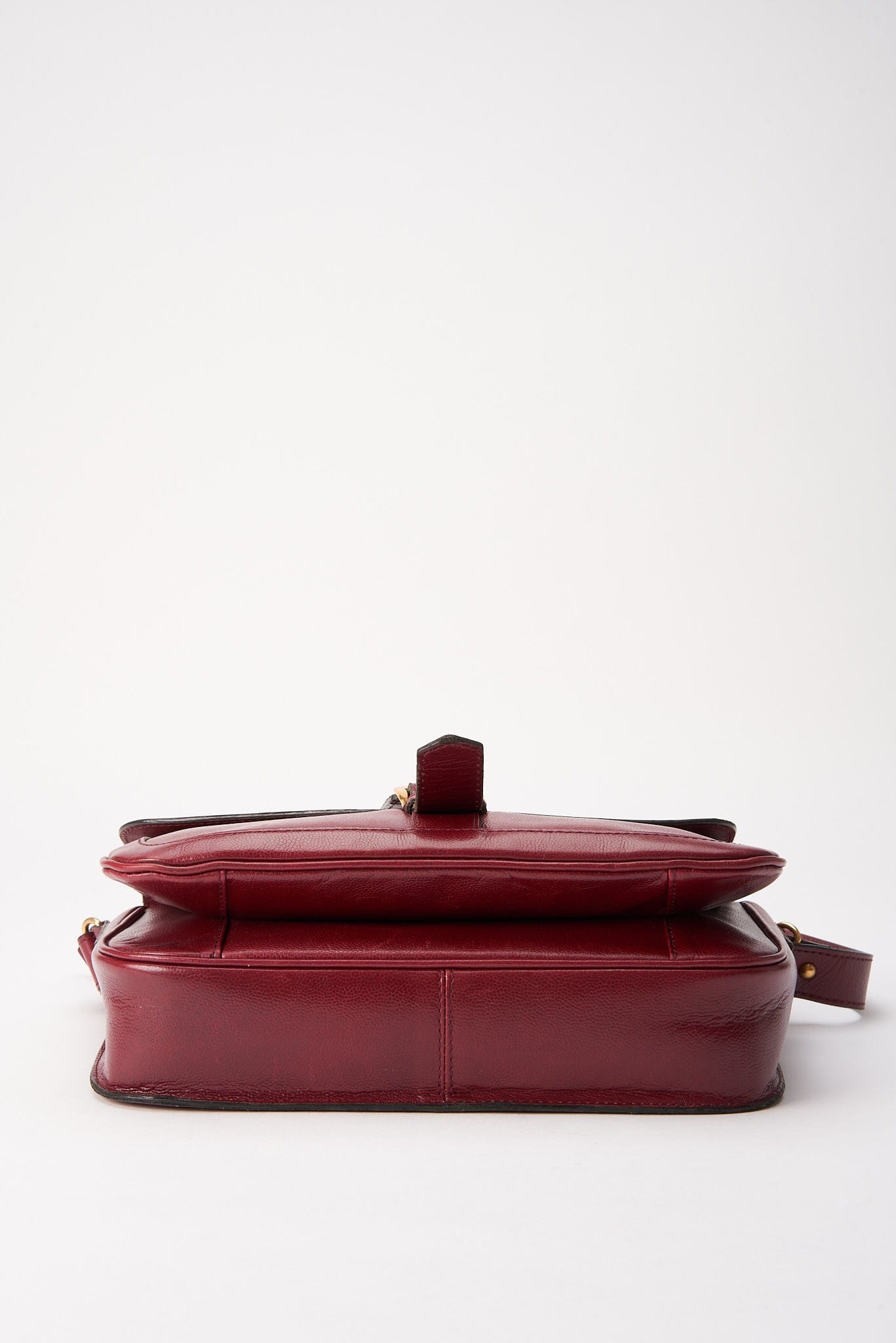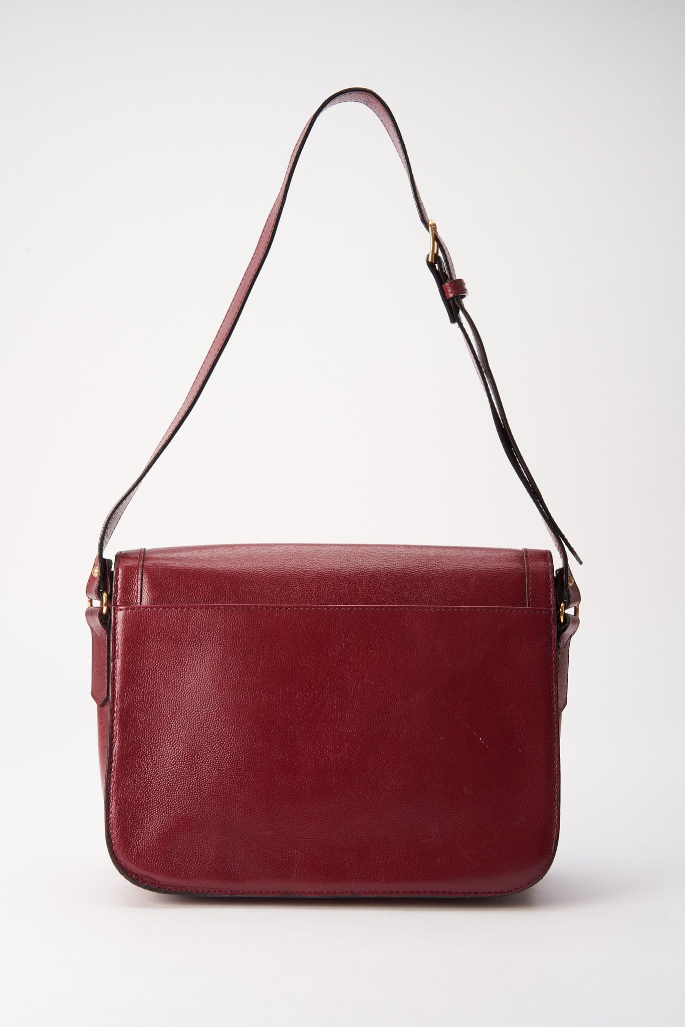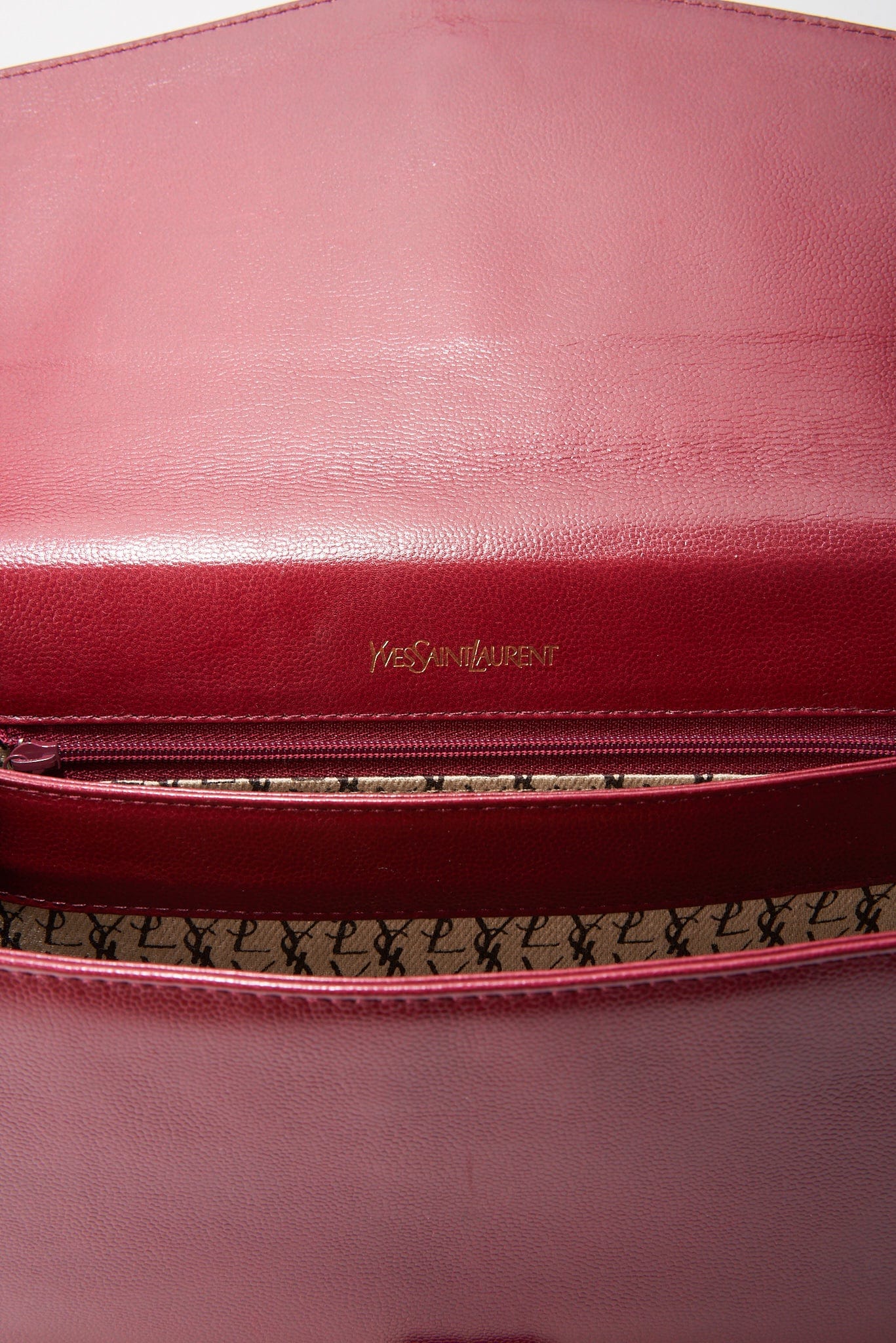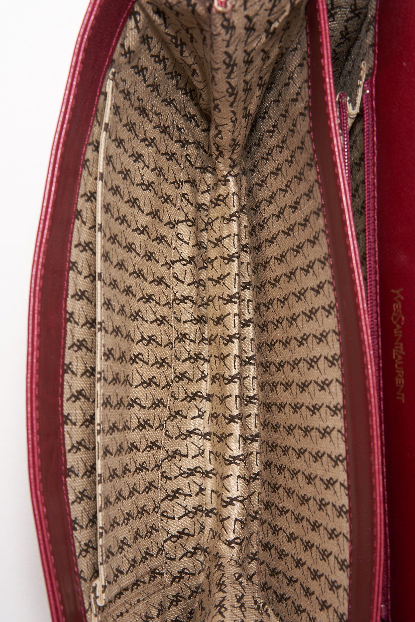 A chic YSL satchel style bag crafted from a textured red leather, this style is timeless and minimal.