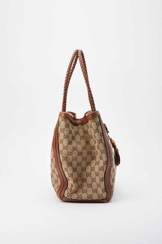 Vintage Gucci Monogram Canvas Tote with Metallic Leather Trim