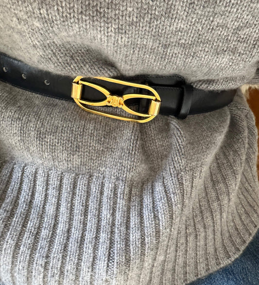Vintage Celine Sulky Black Leather Belt
