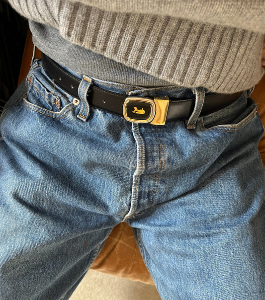 Vintage Celine Black Enamel Belt with Sulky Logo
