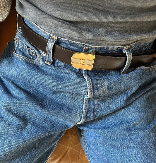 Vintage Celine Triomphe Brown Leather Belt