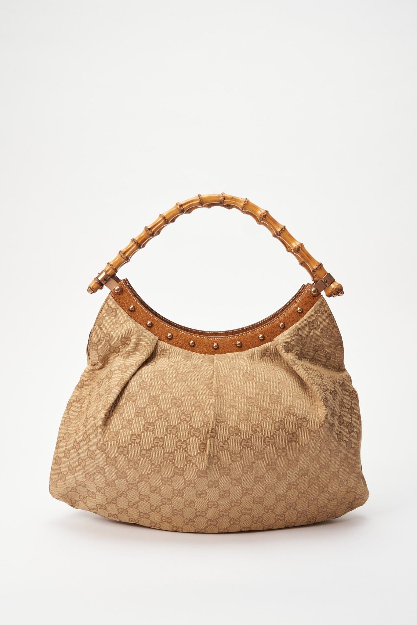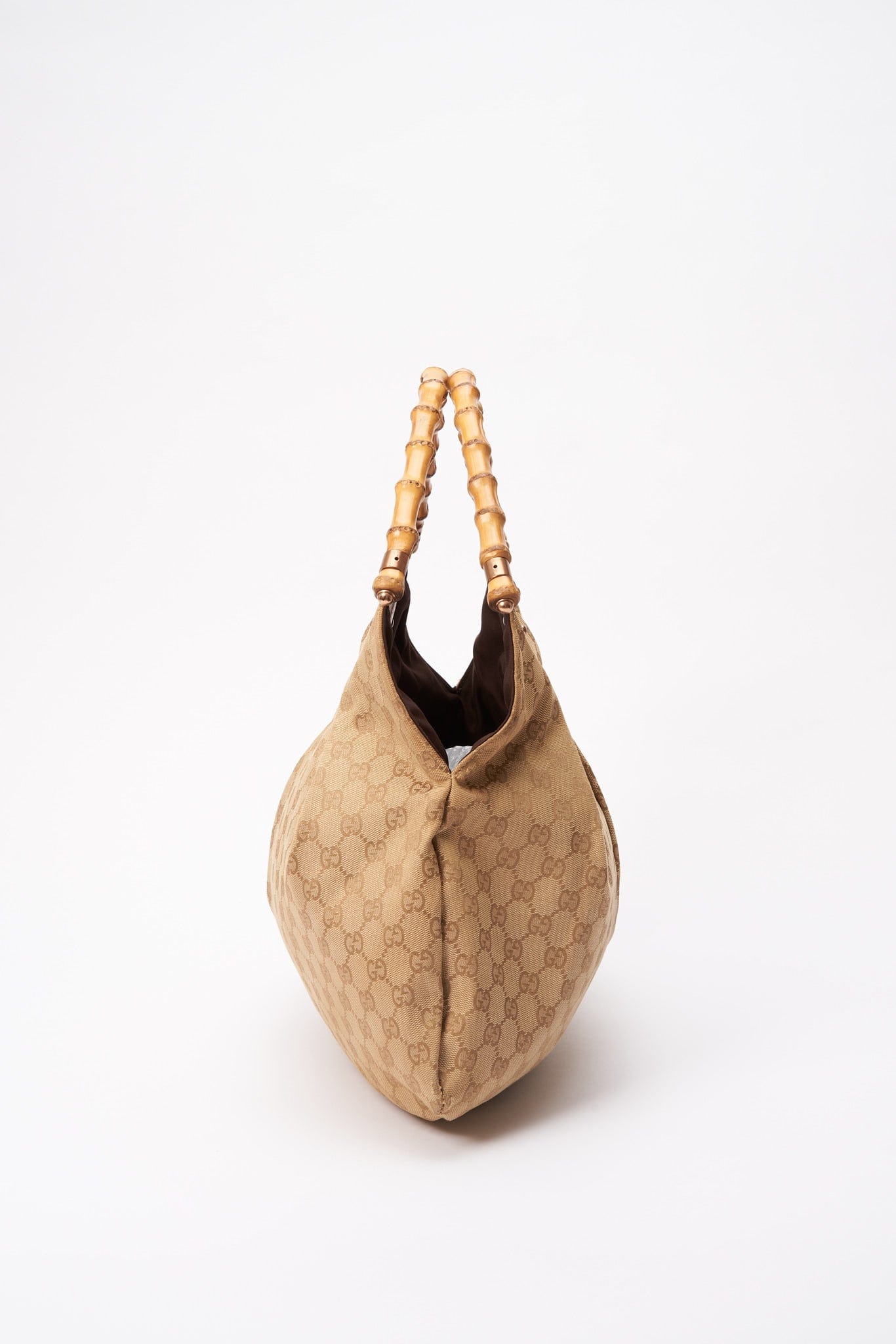 Vintage Gucci Bag with Bamboo Handle - Beige Canvas