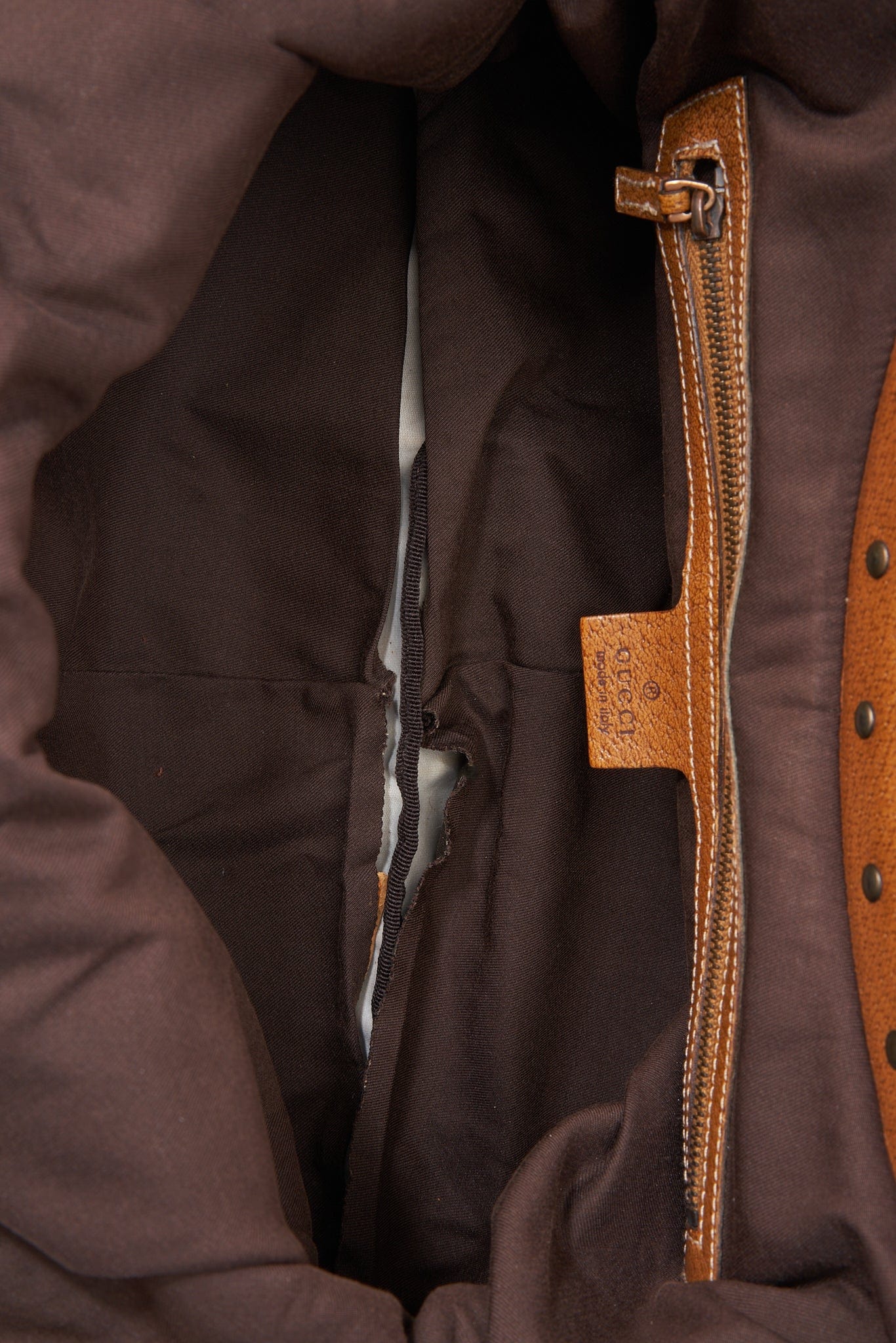 Inside the bag is lined with a nylon lining which shows some damage in photos.