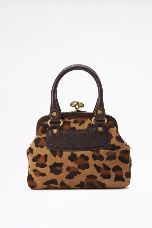 Christian Dior Vintage Leopard Calf Hair Top Handle Bag