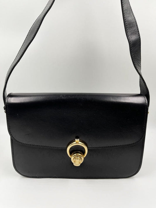 Celine Black Textured Leather Crossbody Belt Bag with Gold Hardware