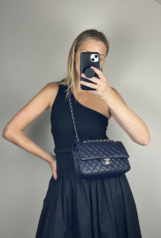 Chanel handbags are synonymous with timeless elegance and luxury. Chanel's dedication to craftsmanship and attention to detail are evident in the meticulous construction of their handbags. From the iconic Chanel 2.55 with its quilted leather exterior, interlocking CC logo closure, and signature chain strap with leather interwoven through it, to the Classic Flap Bag and the Chanel Double Flap Bag. Each bag is carefully made by skilled artisans, ensuring the highest quality.