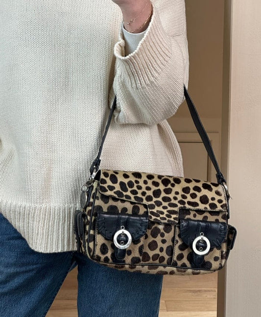 Christian Dior Vintage Leopard Calf Hair Top Handle Bag