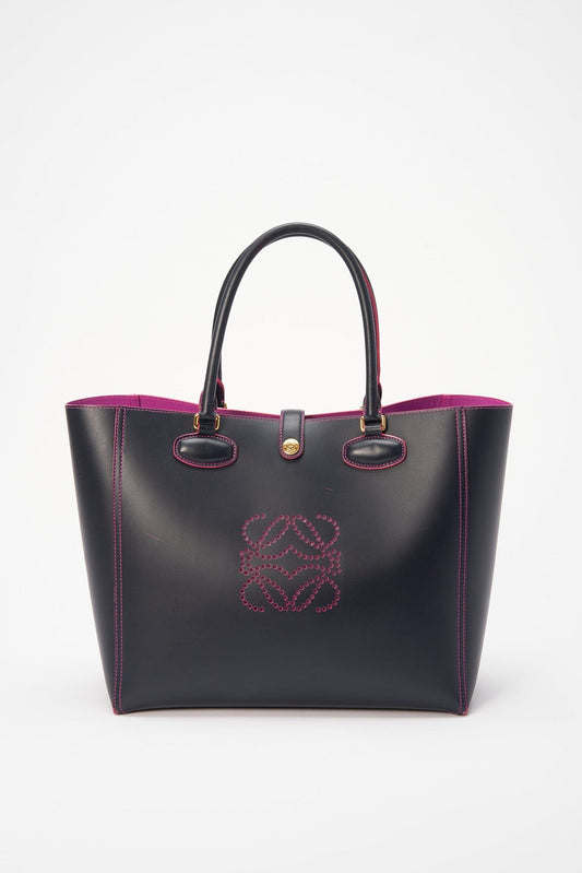 Vintage Loewe Purple Canvas and Leather Tote Bag